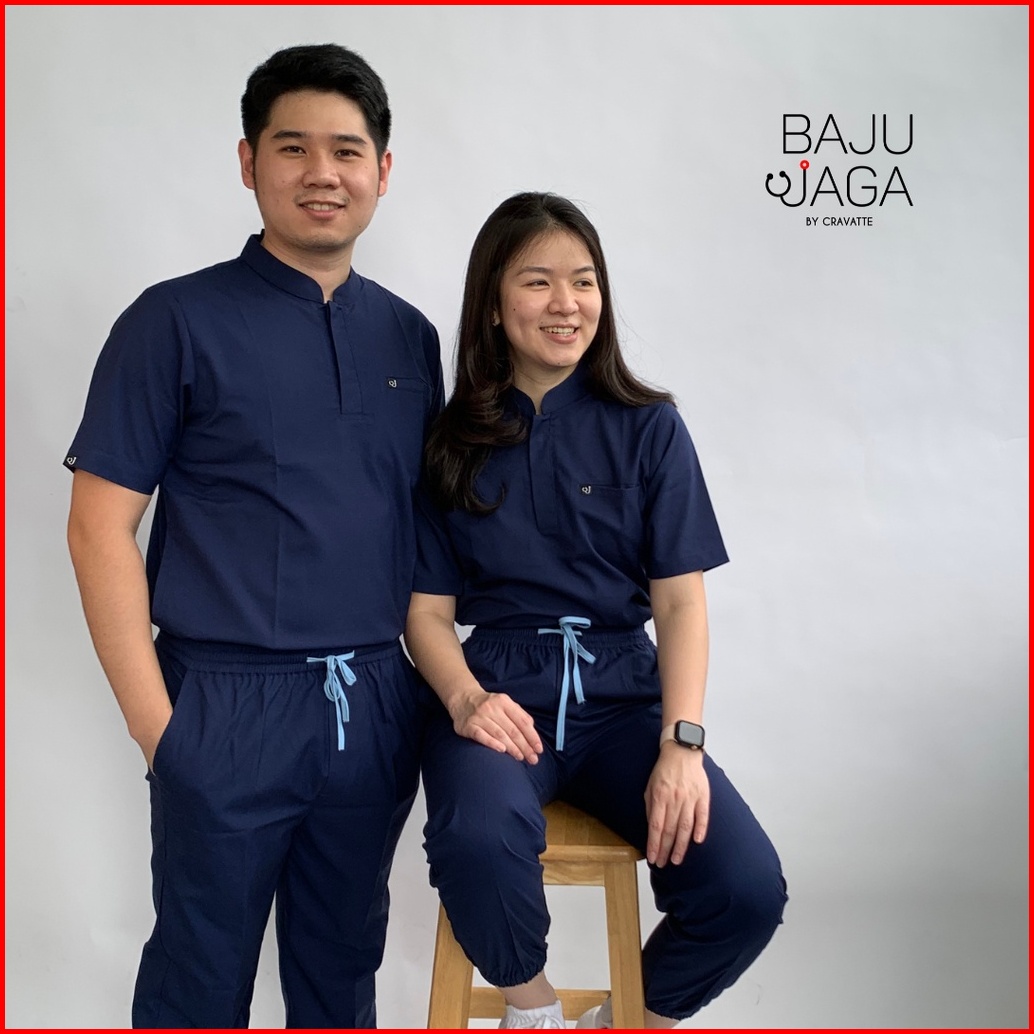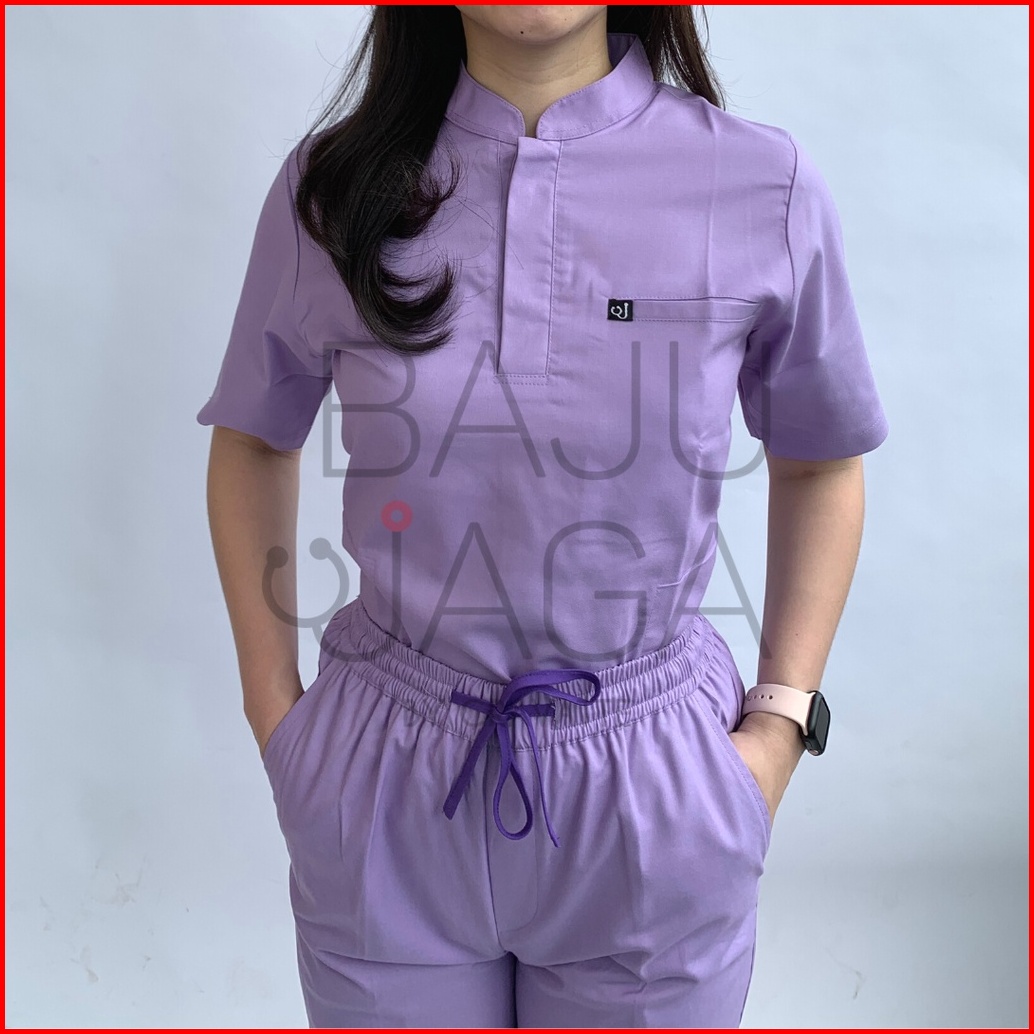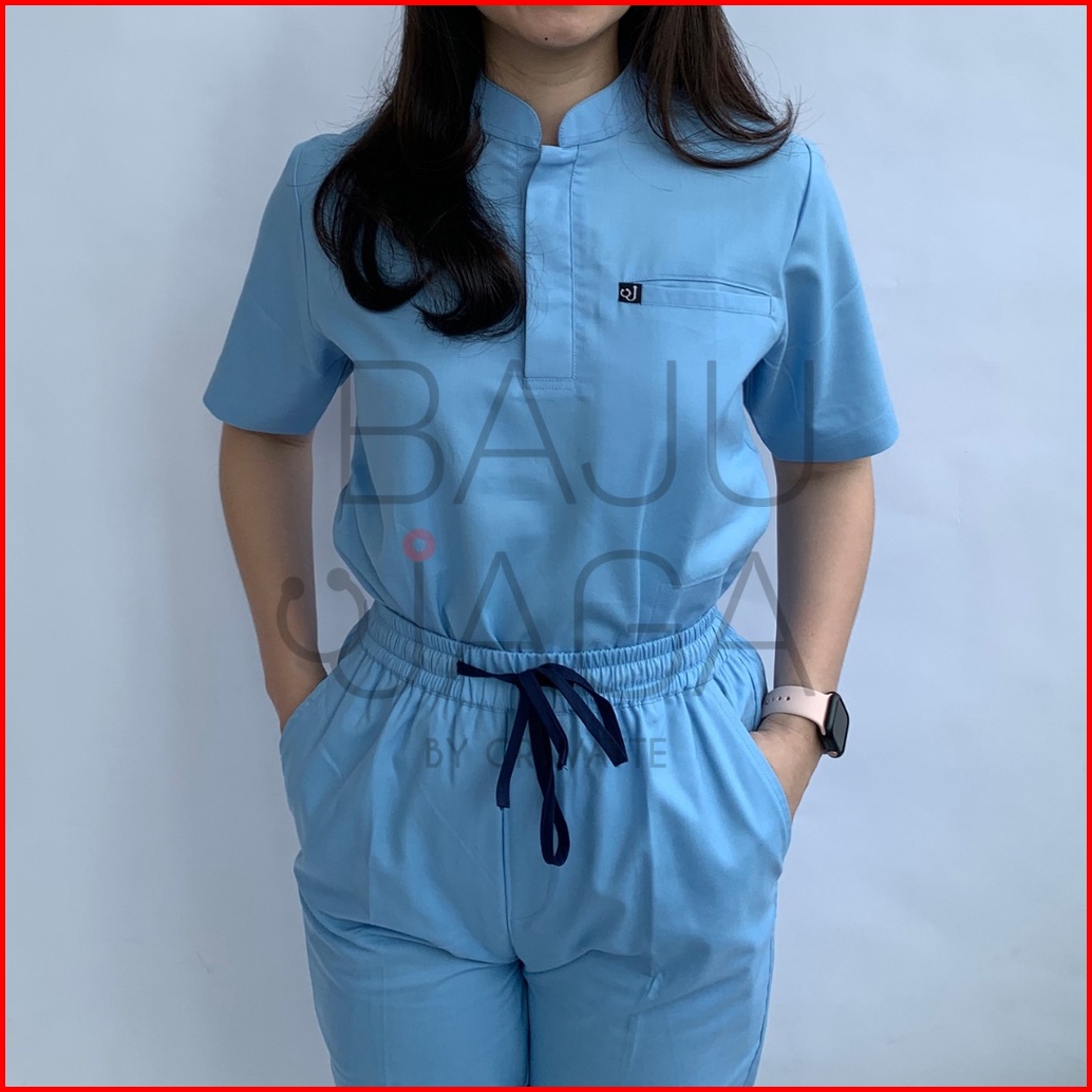 Baju Jaga Scrub Mandarin Collar Lengan Pendek