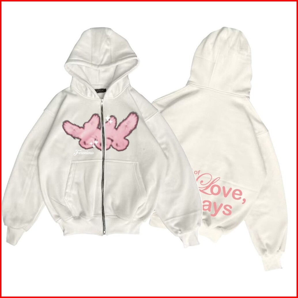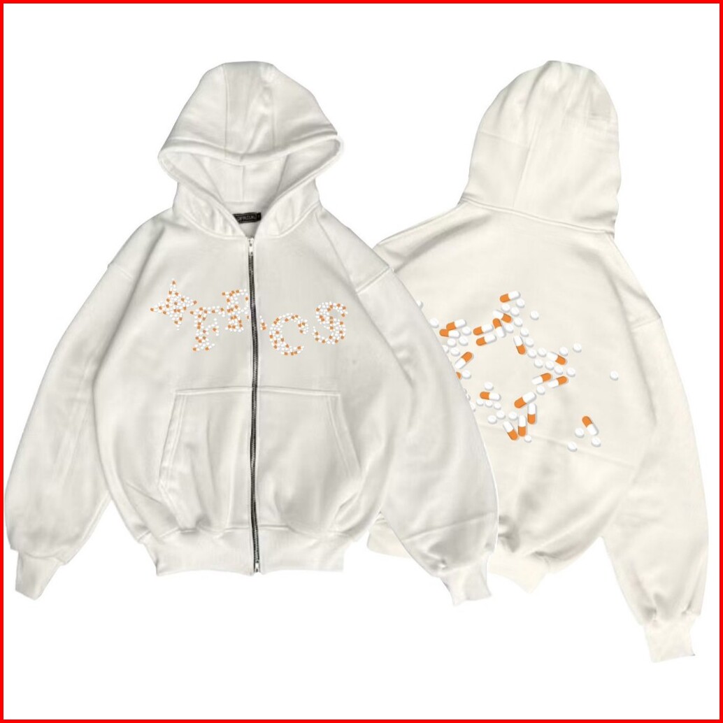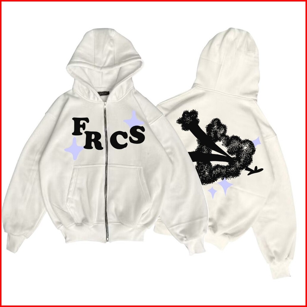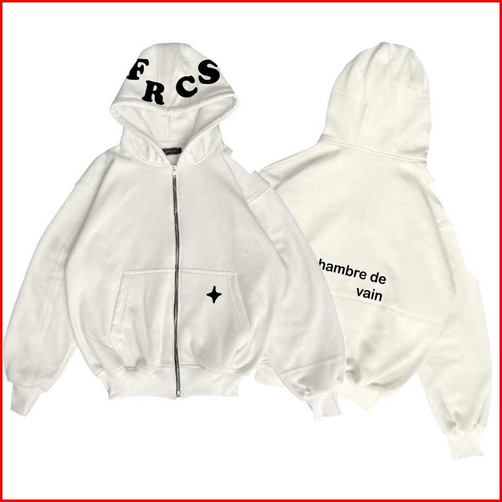 Hoodie Zipper Boxy Warna Hitam Full Tag Bordir Timbul Sweater Terlaris