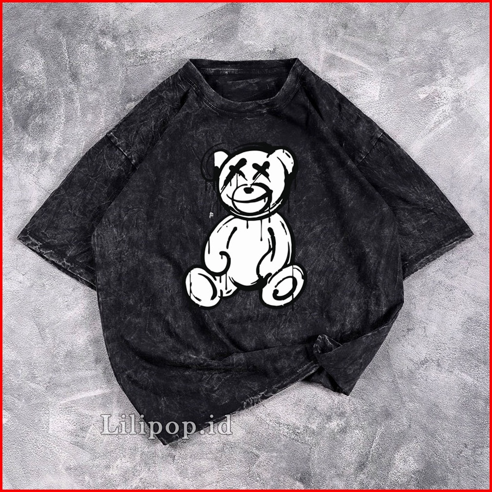 Kaos Baju Wash Tshirt Bear Pria Wanita Stone Wash Baju Distro Basic Lengan Pendek Unisex