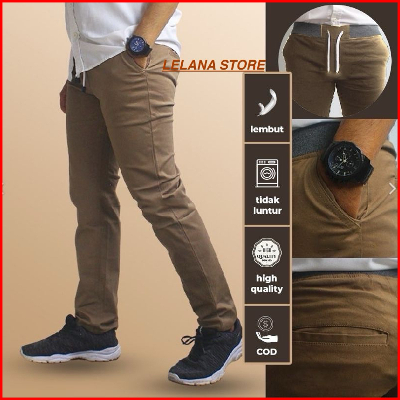 Bahan Melar Celana Chinos Panjang Karet Rip Bahan Adem Nyaman Dipakia