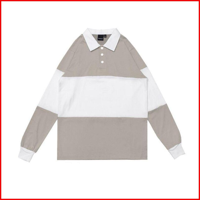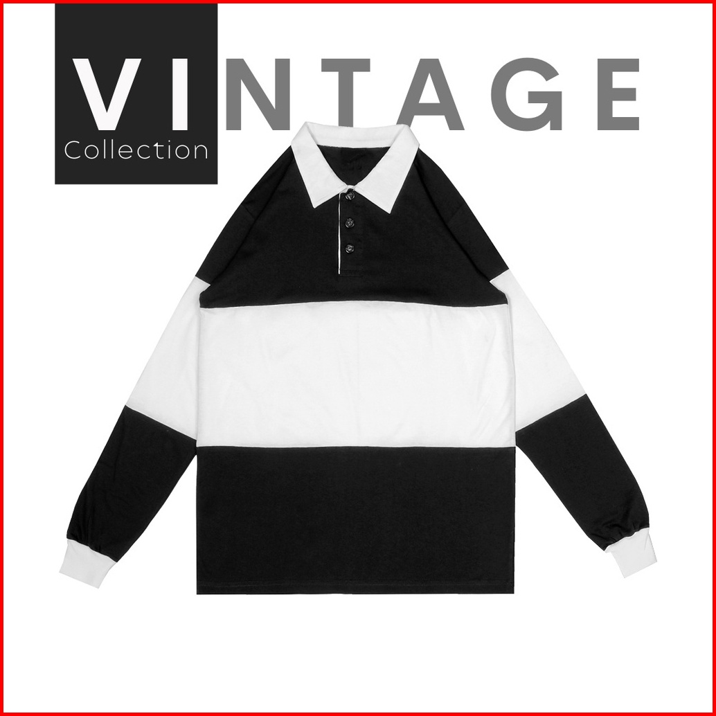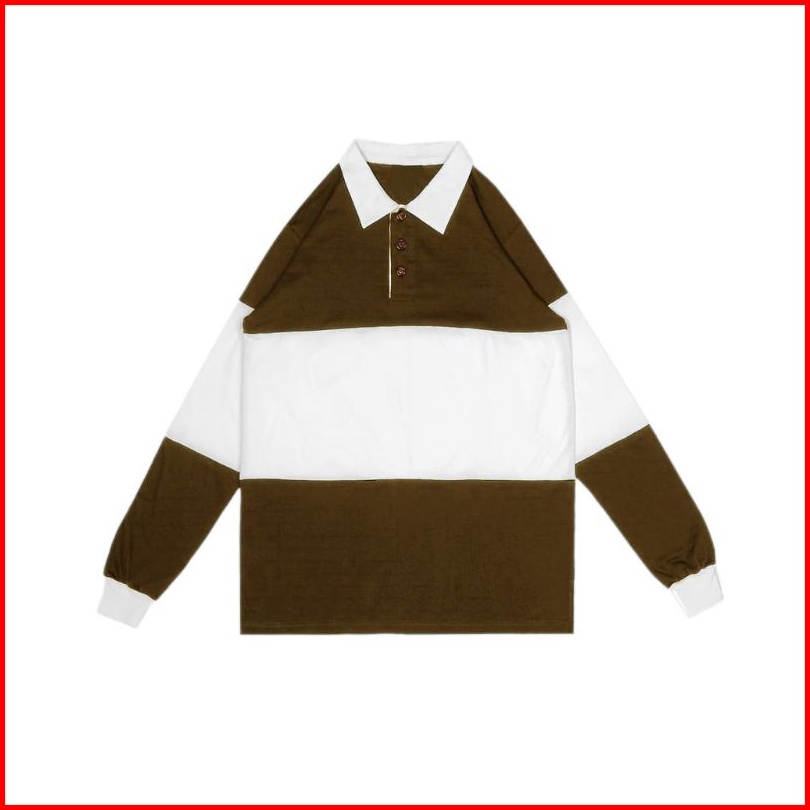 Vintage Rugby Polo Shirt Kaos Pria Wanita Lengan Panjang T-shirt Oversize