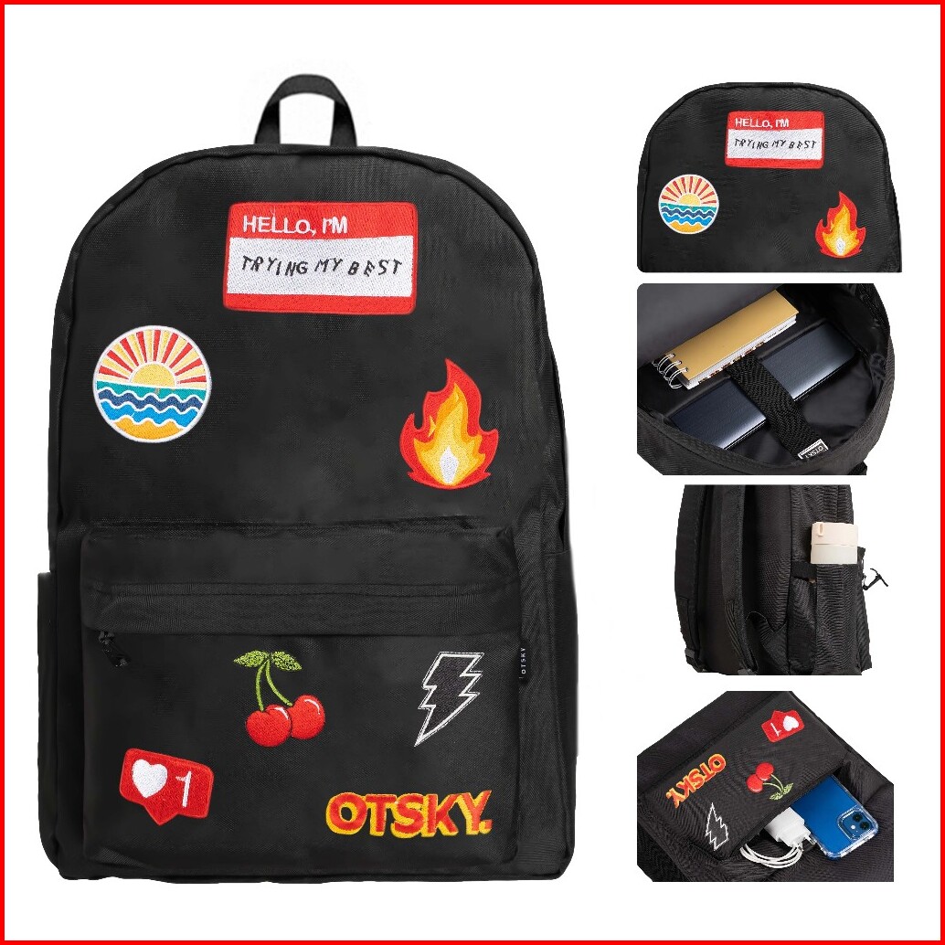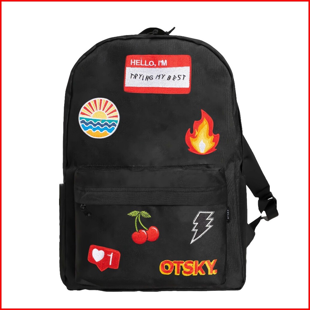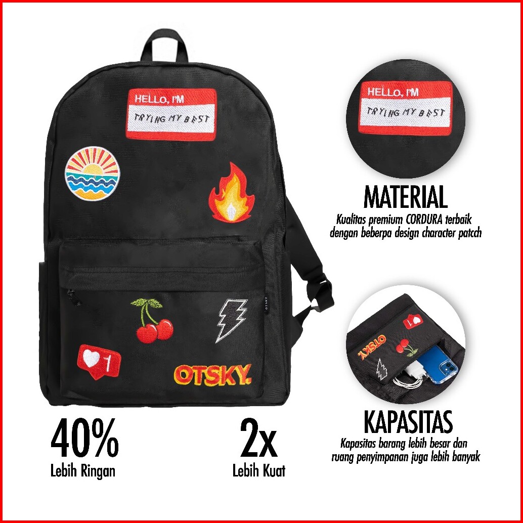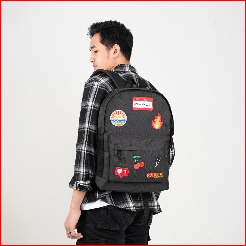 Otsky Tas Ransel Backpack Sticker Black Bordir Premium Pria Wanita