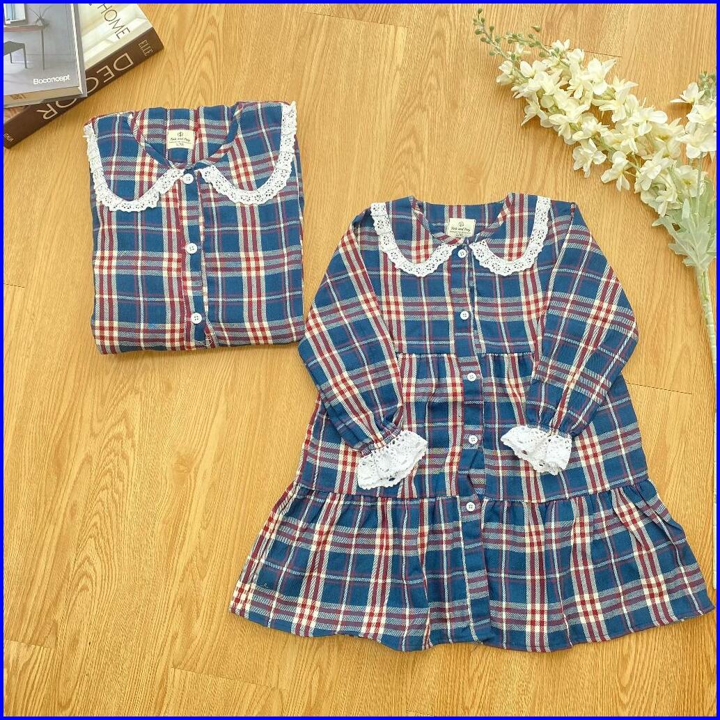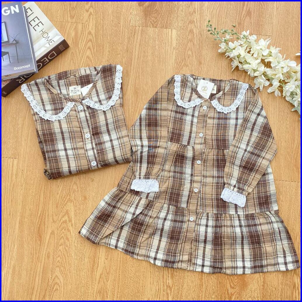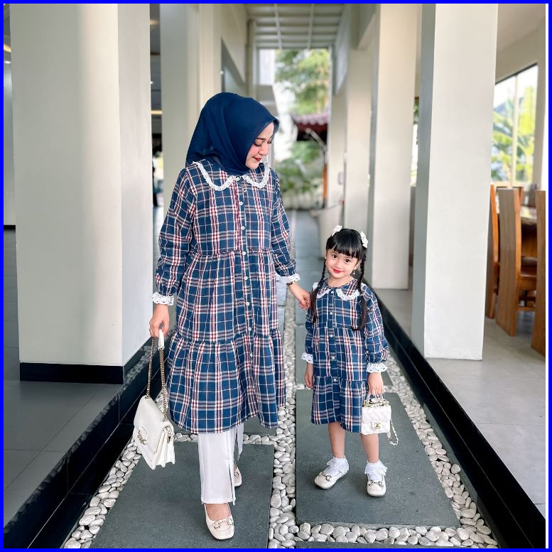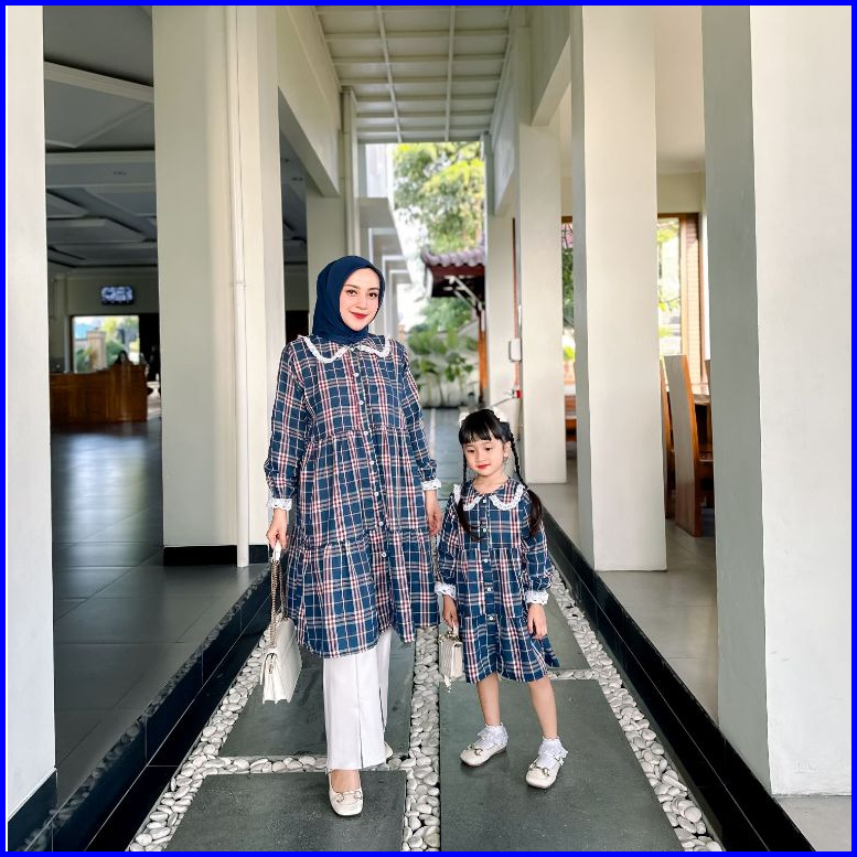 Kalsandfrey Beryl Gingham Tunik Couple Mama Anak Kembar Flanel Flannel Premium Sarimbit