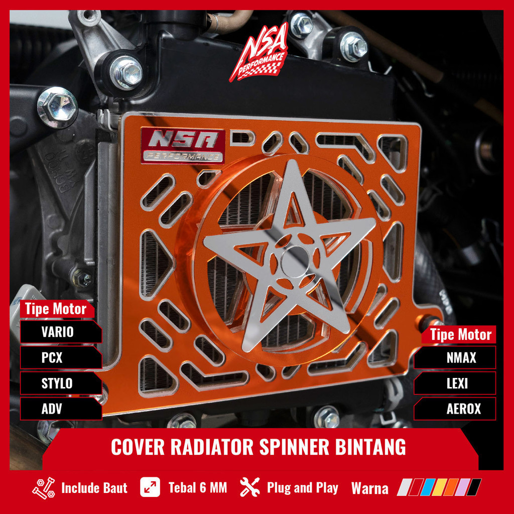 NSA COVER RADIATOR SPINER BINTANG MIRROR VARIO PCX NMAX AEROX ADV LEXI STYLO Tutup Radiator Spinner Bintang Yamaha Honda 125/150/160 Aksesoris Motor NSA PERFORMANCE