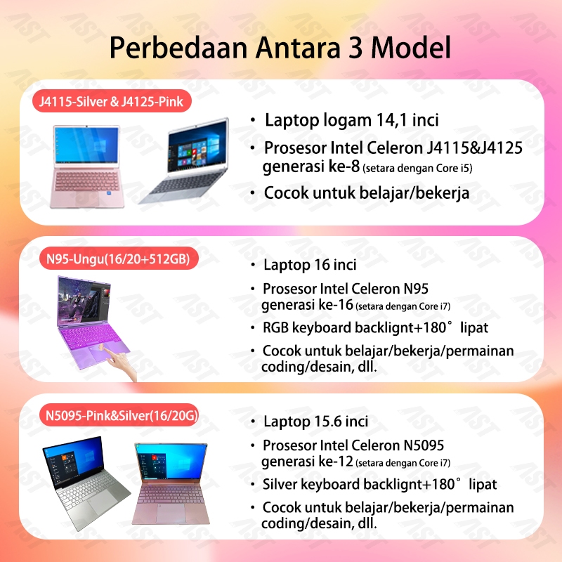 [Star] Laptop AST Pink baru murah 15.6inch ori RAM20g+512GB SSD Windows11+Wifi SMA/SMP/desain【2025 Upgrate】