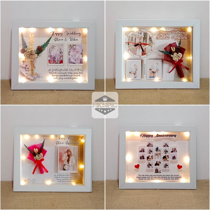jam dinding custom + dried flower + bingkai 3d / kado anniversary / hadiah pernikahan / kado ulang tahun cewek | murah