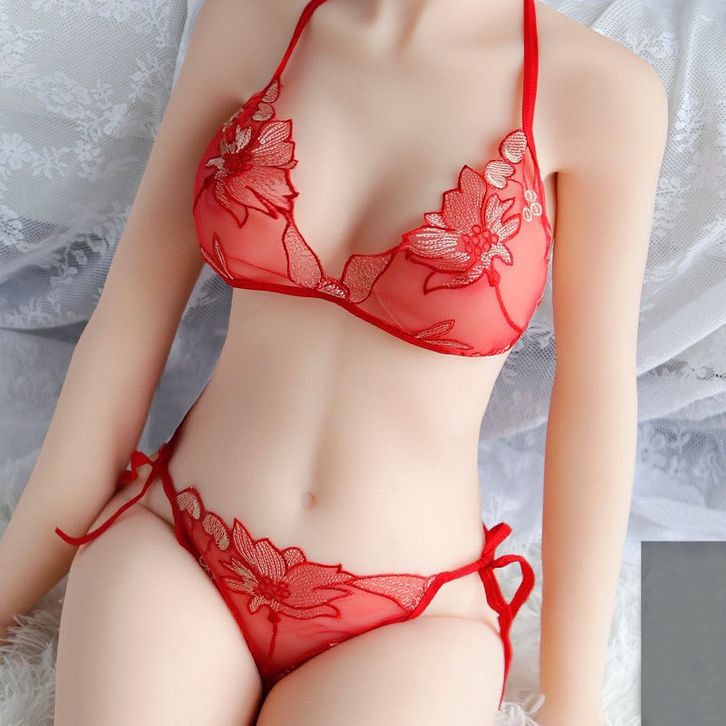 Lingerie Wanita Bikini transparan Seksi Set Bra V-Neck Renda Bordir Bunga Bra&thongs B11