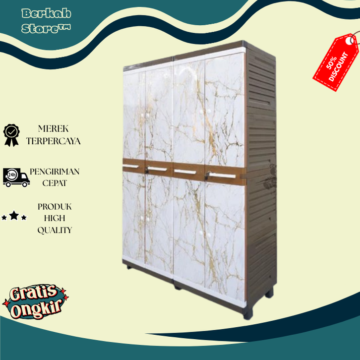 Lemari Plastik Baju CLUB Justin Ultra Grand Mini Twin FULL RAK KUNCI CERMIN KACA 4 PINTU termurah
