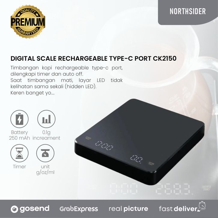 TIMBANGAN KOPI DIGITAL SCALE TIMER RECHARGEABLE TYPE-C PORT - CK2150