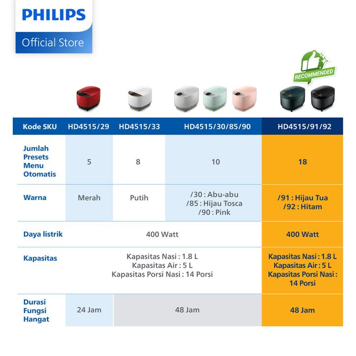 Magic Com Philips Digital Rice Cooker Magicom HD4515/85 1.8 L Lapisan Bakuhanseki Anti Lengket Anti Baret Paling Awet