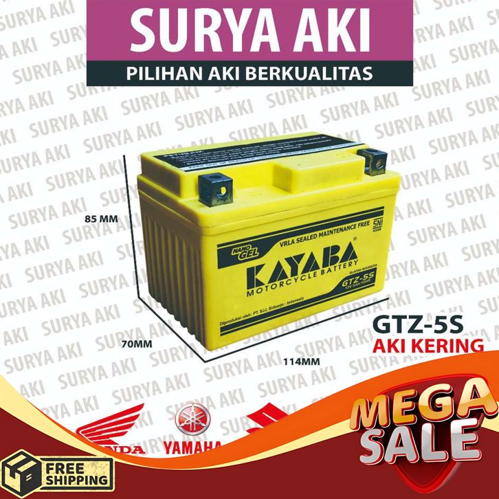 Aki Motor KAYABA GTZ5S Aki Kering BEAT VARIO REVO 110 SCOOPY SUPRA X 125 SPACY BLADE NEW MEGA PRO VERZA CRF GENIO - Free