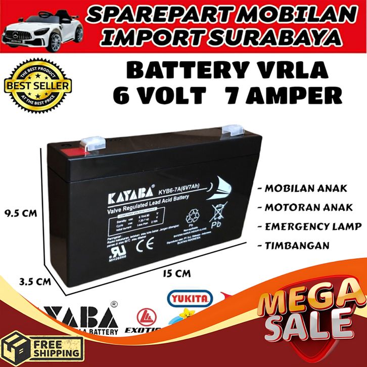 PUSAT BATERAI KAYABA 6 VOLT 7 AMPER MOTOR AKI MOBIL MOBILAN ANAK BATTERY PMB PLIKO 6V 7AH RC MAINAN KAYABA