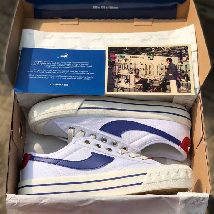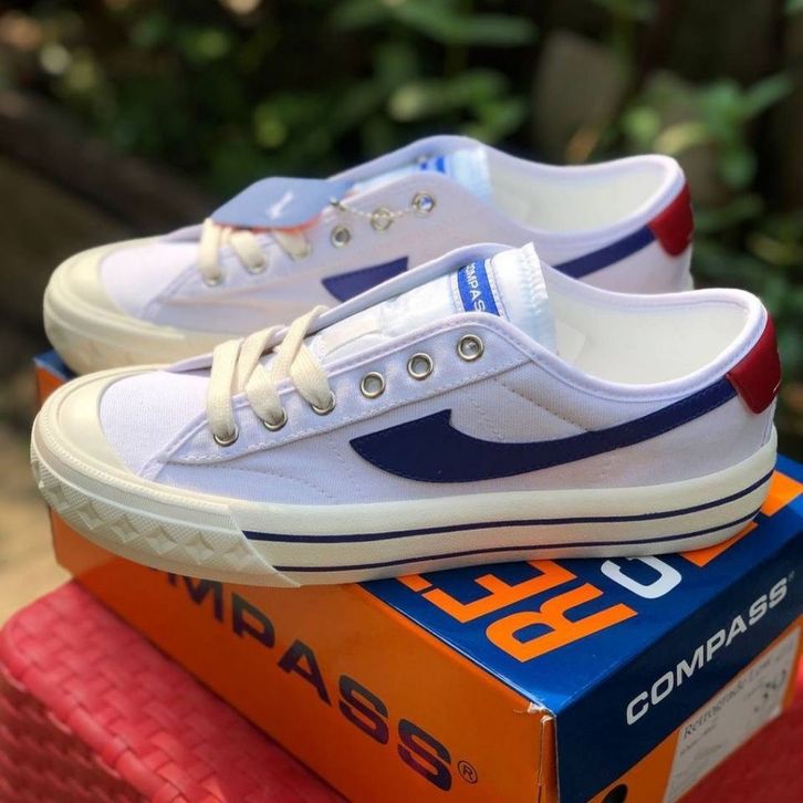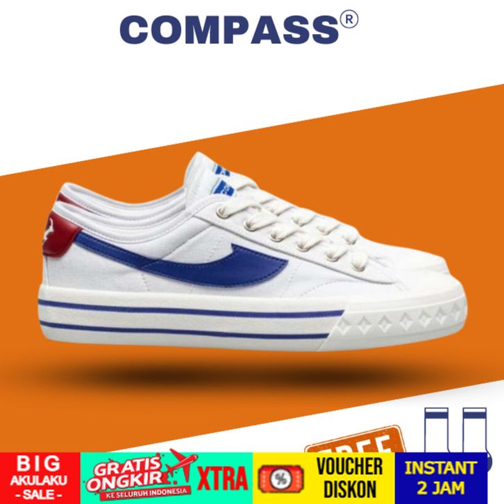 Sepatu Pria Compass Original|Spatu Sneakers Pria Compas Retrograde Low White Blue/Black BY SILAKU MANIS