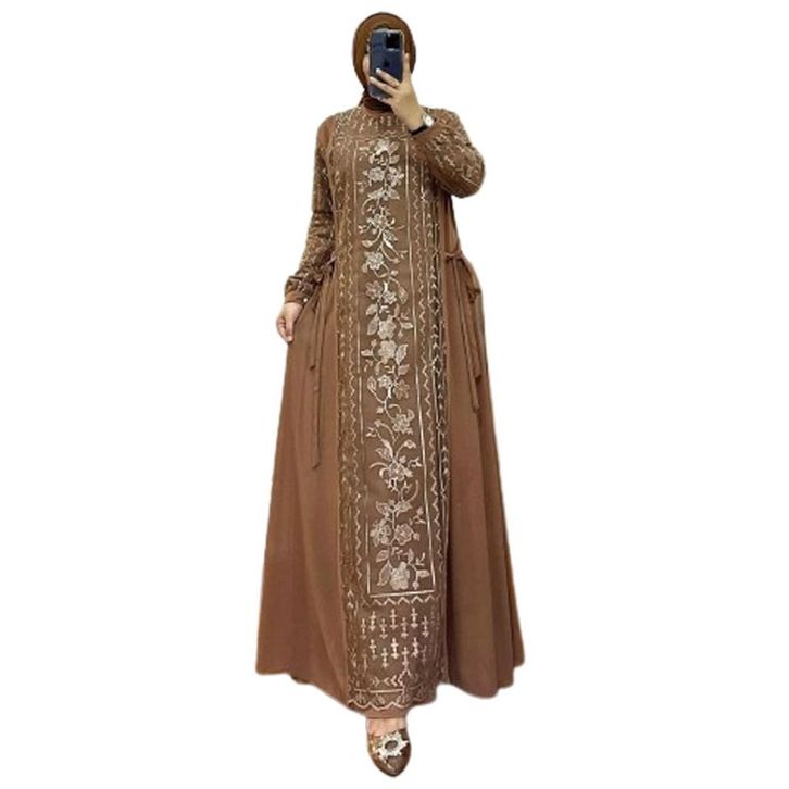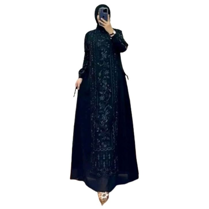 Vallina Outfit - Wilona Dress Maxy Wanita Muslim Matt Ceruty Babydoll Mix Brukat OOTD Kondangan