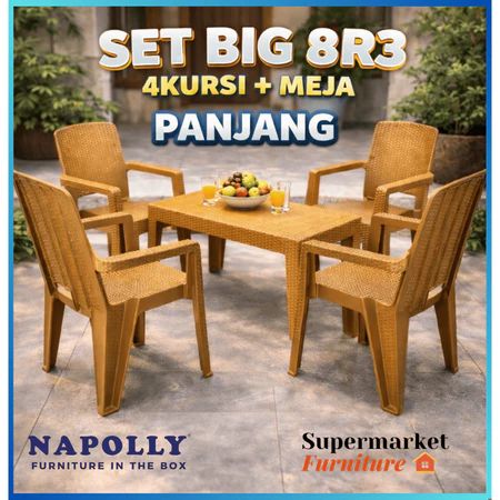 [Star] Kursi Plastik Napolly Set Big 8R3 4Kursi + Meja OST Panjang Kursi Teras Plastik Kursi Napolly Set Kursi Santai