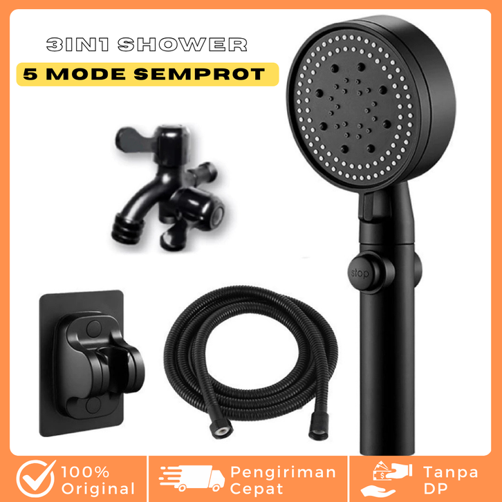 SHOWER KAMAR MANDI SET/ SHOWER MANDI/ SHOWER SET 3IN 1 HITAM PREMIUM SHOWER HEAD SET 5 MODE ADJUSTABLE SHOWER PORTABLE