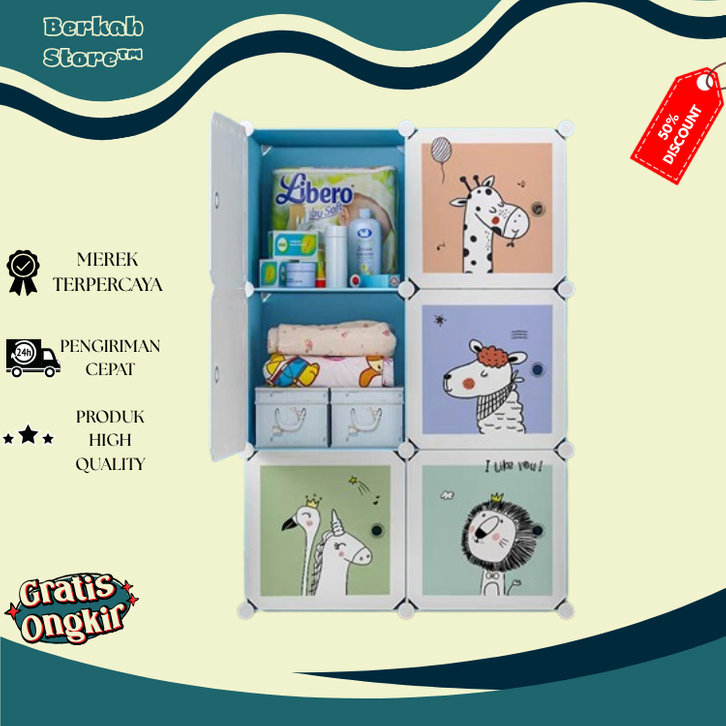 Lemari Plastik Anak Susun Lemari Pakaian Plastik Lemari Bayi Wardrobe Baju 6 Muka 6 Slot Dengan Pagar Plastik