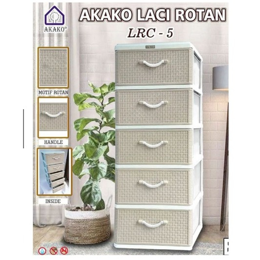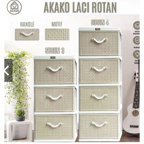 Lemari Plastik Berkualitas 2024 Lemari Laci Plastik Lemari Susun Plastik Akako Motif Rotan Susun Kuat Tahan Lama