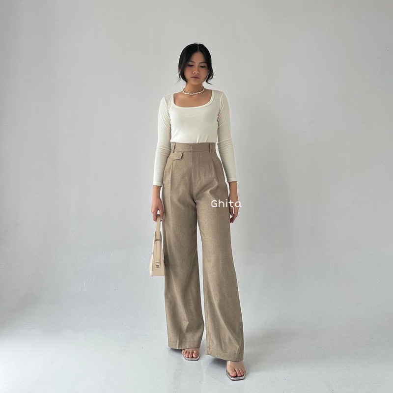 ORO PANTS HIGHWAIST - CELANA PANJANG KULOT WANITA BAHAN LOOSE PANTS TROUSER WANITA ANTI KUSUT CELANA BASIC KERJA STRAIGH
