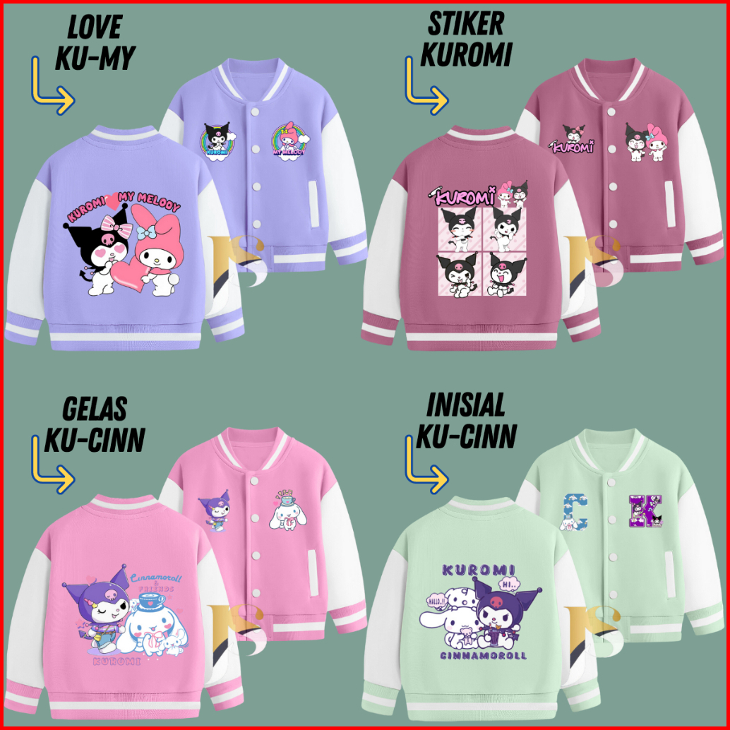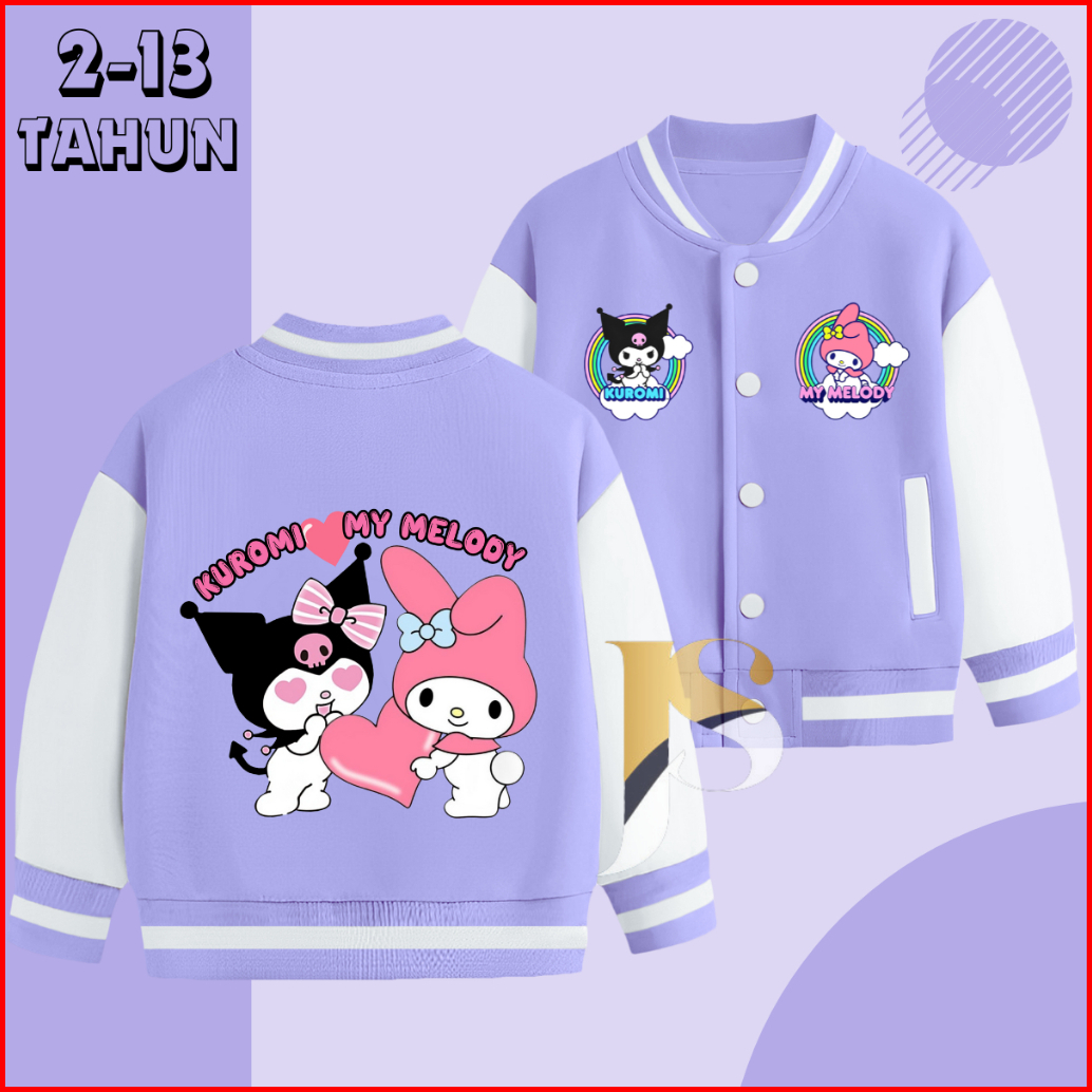 Jaket Baseball Anak Perempuan Usia 2-13 Tahun Karakter Lucu Sanrio Kuromi My Melody Cinnamoroll