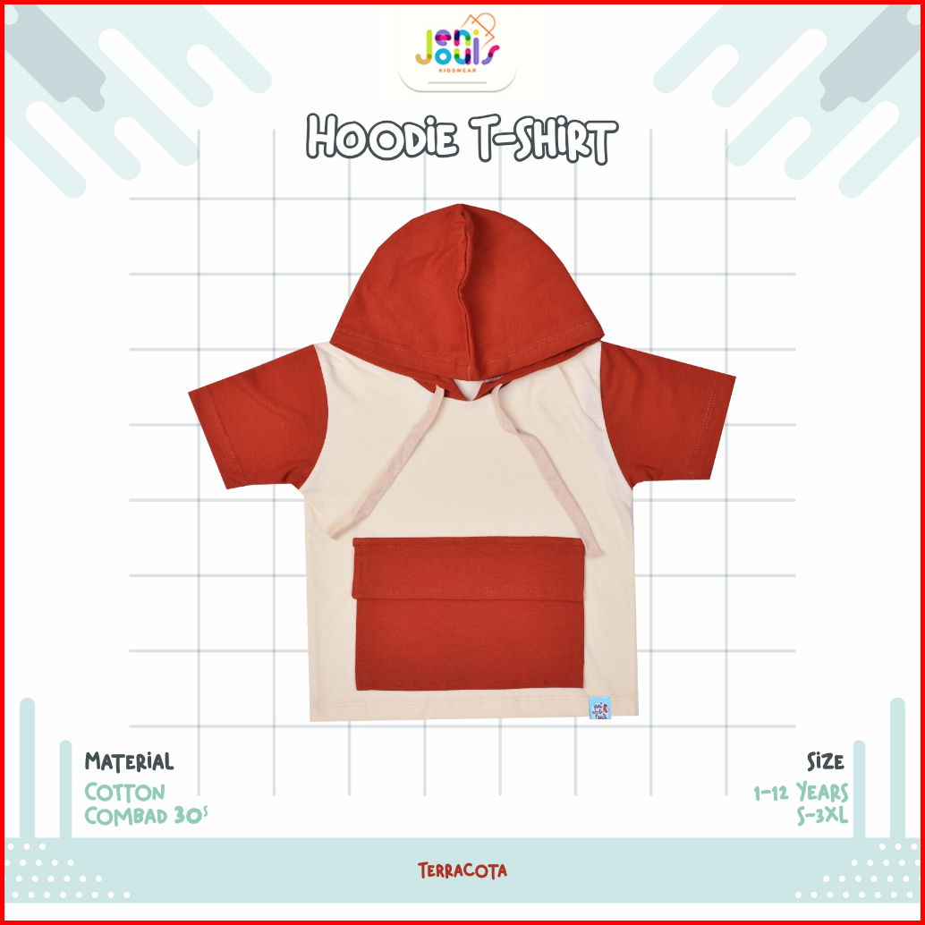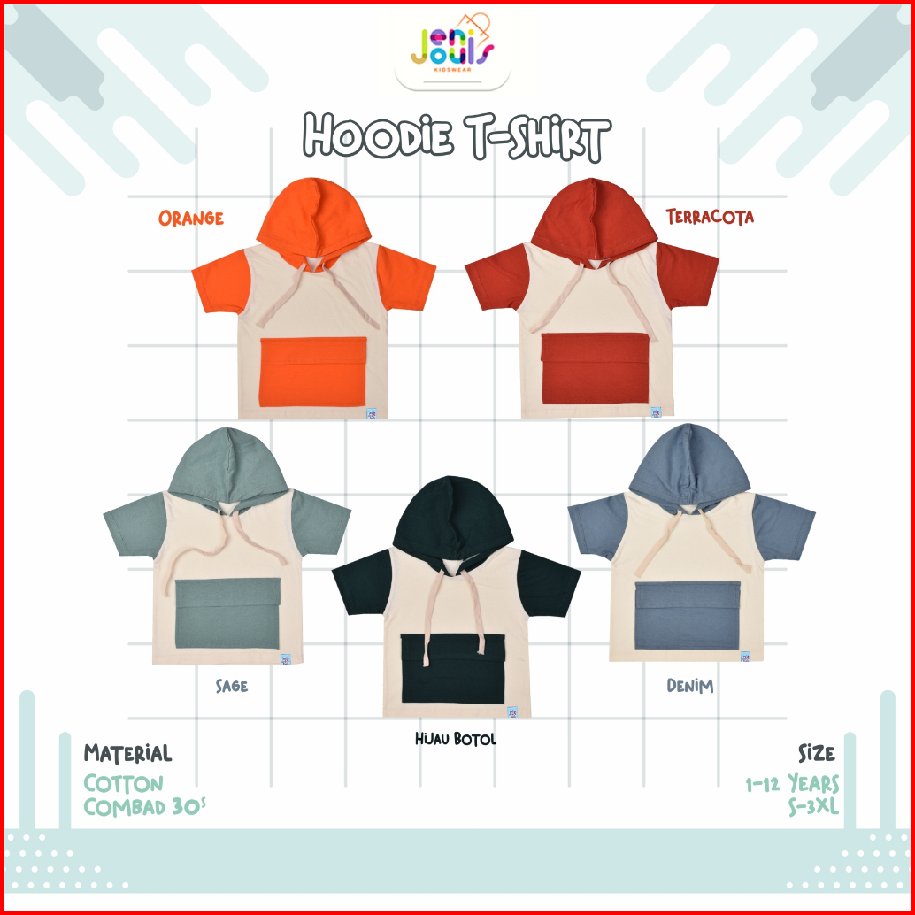 Jeni Louis Kaos Anak Polos Hodie Kantung Premium Cotton 30s 1-12 Years Tangan Pendek