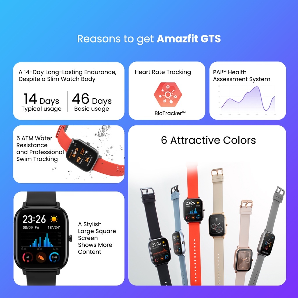 Amazfit GTS Fitness Smartwatch 1.65" AMOLED Always-On display, GPS, Heart rate monitor, jam tangan with Music control, S