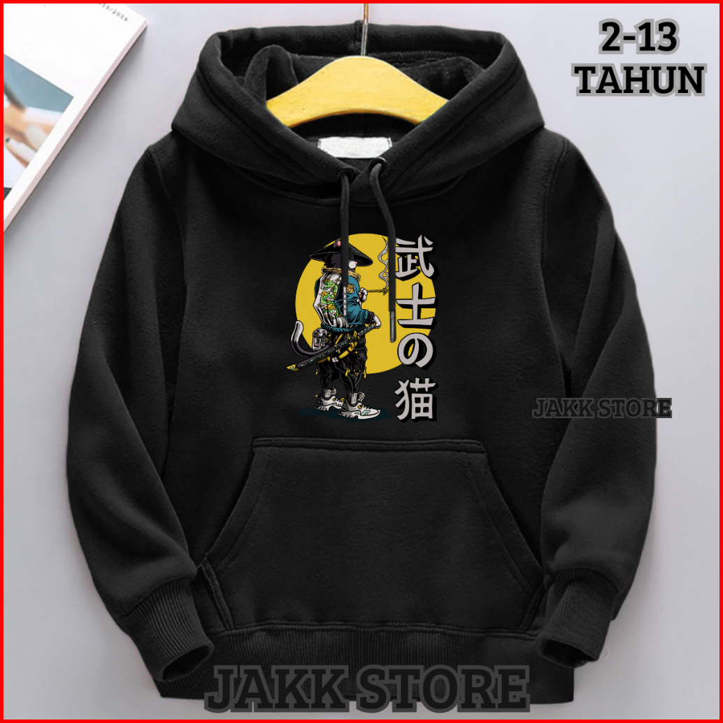 Sweater Hoodie Anak Laki Laki Usia 2 3 4 5 6 7 8 9 10 11 12 13 Tahun Gambar Samurai Kucing Keren