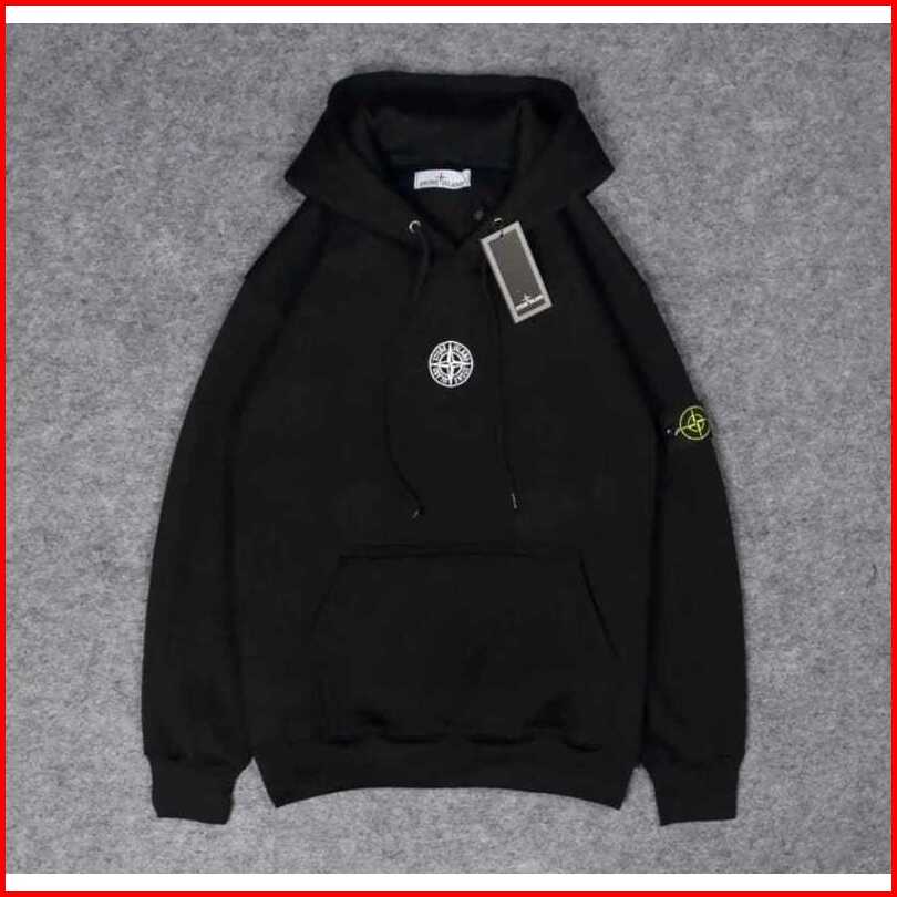 Jaket Hoodie Bordir Hitam Stone Island Terbaru