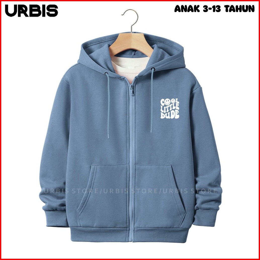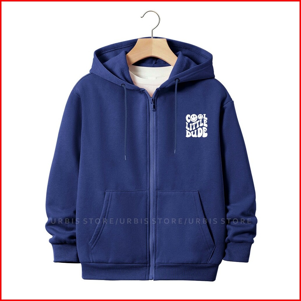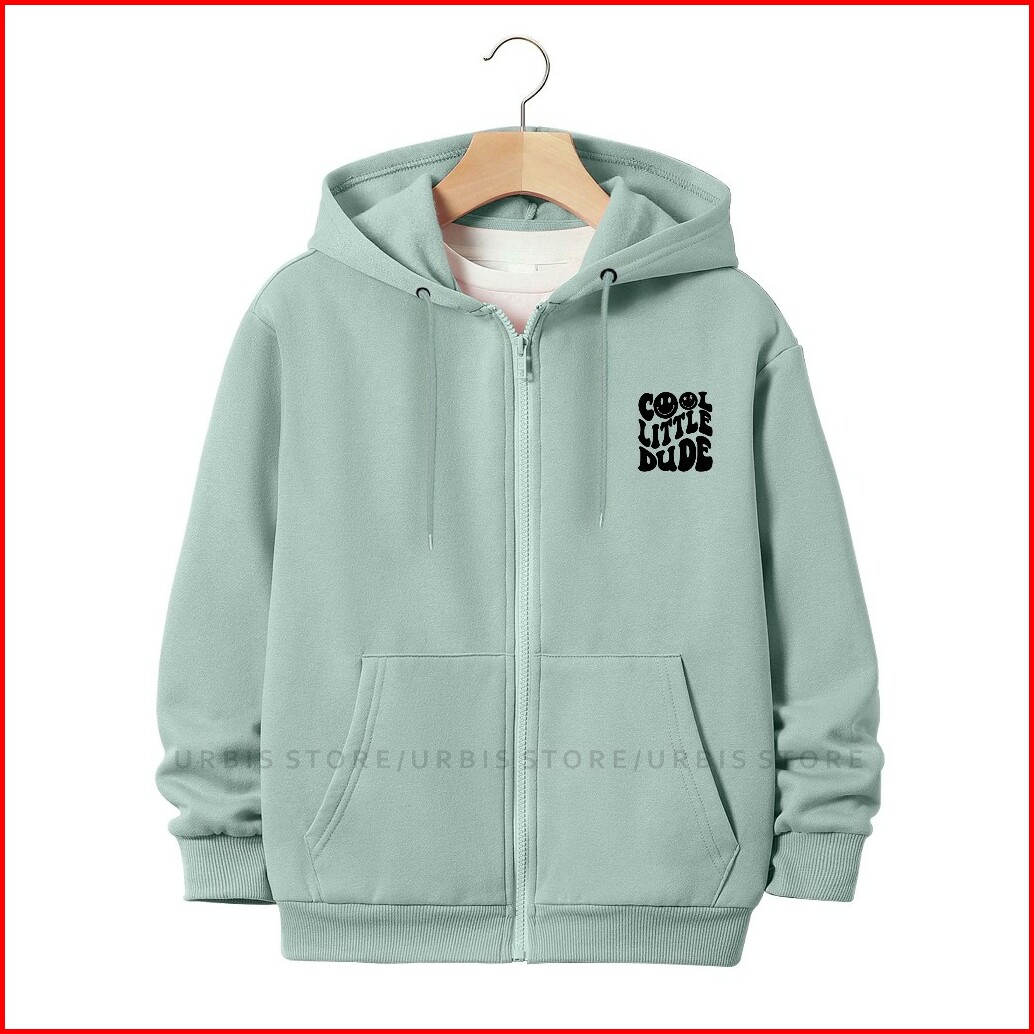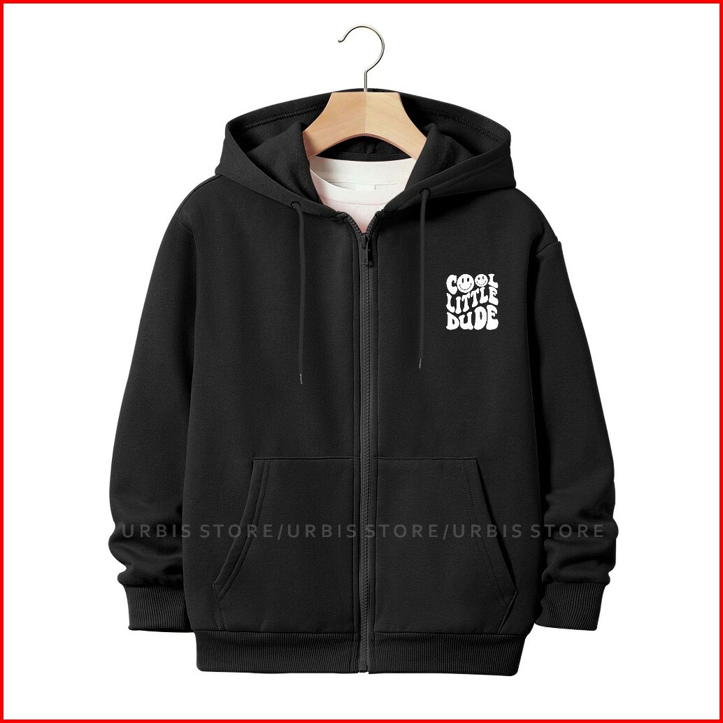 Jaket Sweater Hoodie Zipper Anak Laki-laki Perempuan Usia 3-13 Tahun Cool Little Dude Bahan Fleece Tebal Premium
