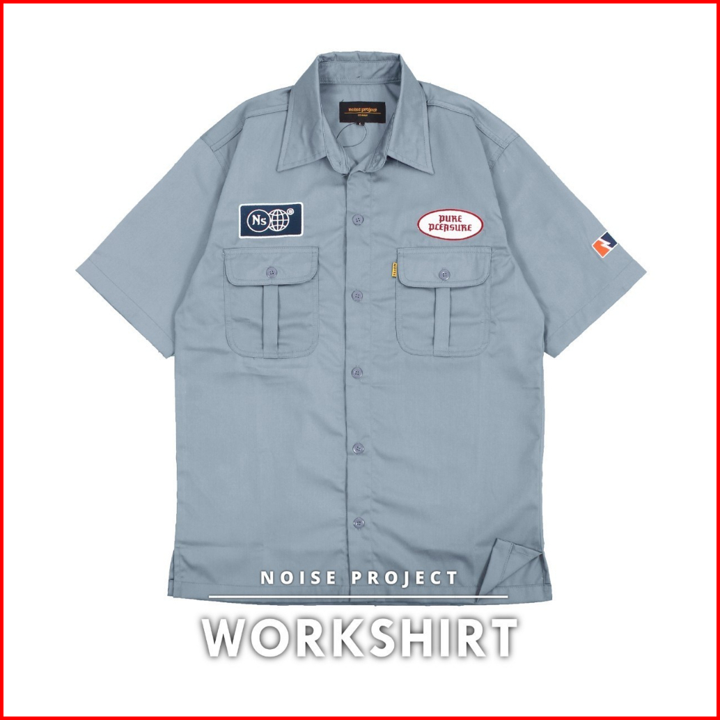Kemeja Pria Workshirt Klasik Premium Kemeja Casual Pria Lengan Pendek Full Bordir Original Noise