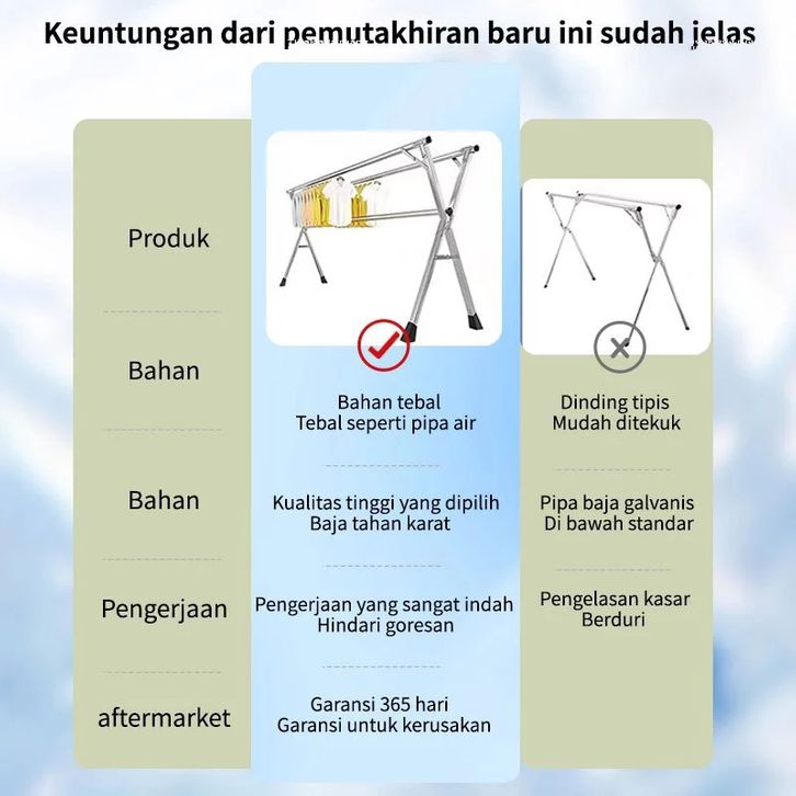 JEMURAN BAJU STAINLESS STEEL / JEMURAN BAJU LIPAT PORTABLE / JEMURAN BAJU MULTIFUNGSI / TIDAK DIPERLUKAN INSTALASI KOKOH
