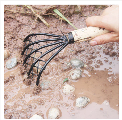 Penggaruk Kerang, Clam rake, serta Garukan Sampah sebagai Perlengkapan Penting Pencari Kerang Pantai Dengan Jaring