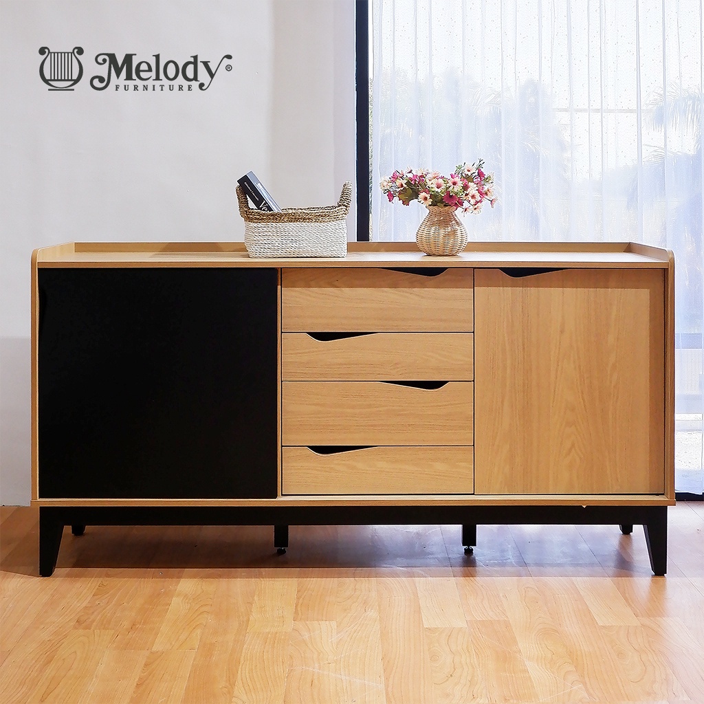 Melody Furniture - Laci Buffet Lemari Serbaguna Credenza Yvaine Sideboard 160 cm Bianco - Black