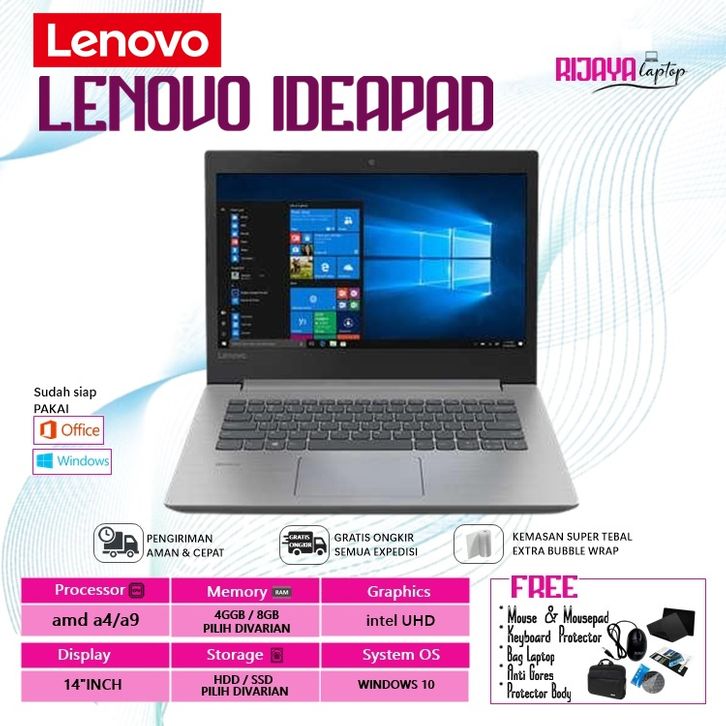 [ READY ] LAPTOP SEOLAH LENOVO IDEAPAD AMD A4/A9 RAM 8GB/SSD 512GB 14 INCH FRERE TAS LAPTOP-MOUSE