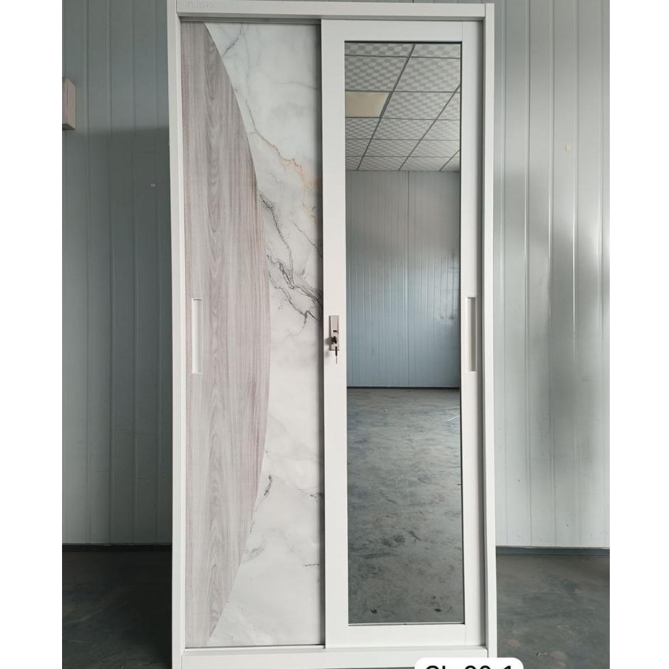 Lemari Pakaian Besi Dengan Kaca Sliding Dua Pintu
