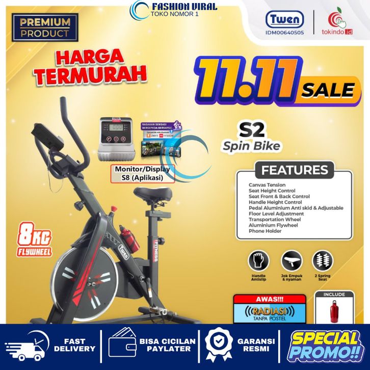 Twen Spin Bike Spinning Bike Indoor Sepeda Statis Fitness S2 Hitam