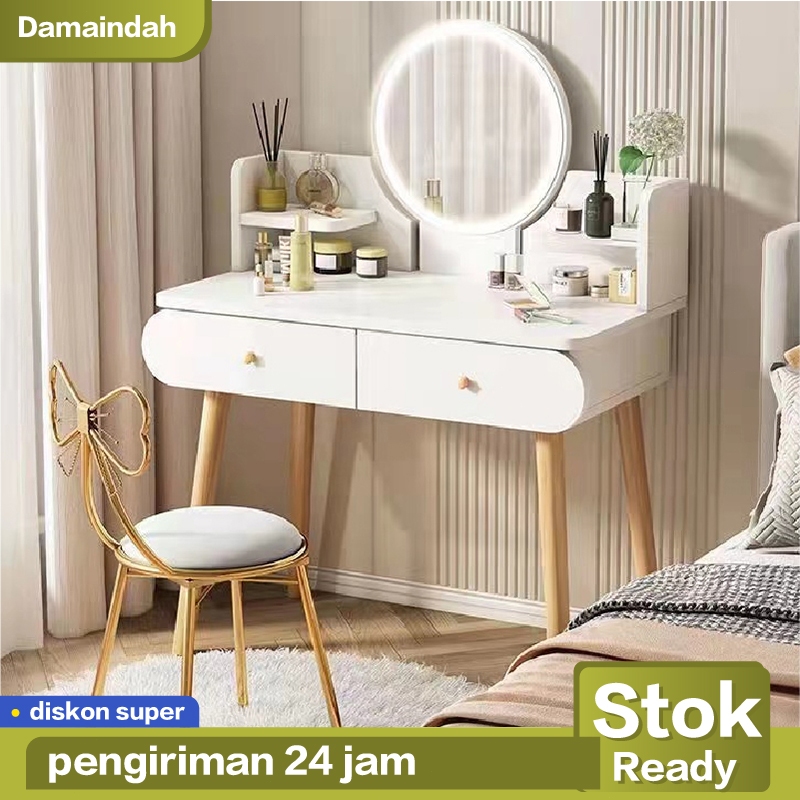Damaindah Meja Rias Set Kursi Pita / Meja Rias Lampu LED/Meja Rias Aesthetic/Minimalis/Mini/Modern/Nordic/Murah
