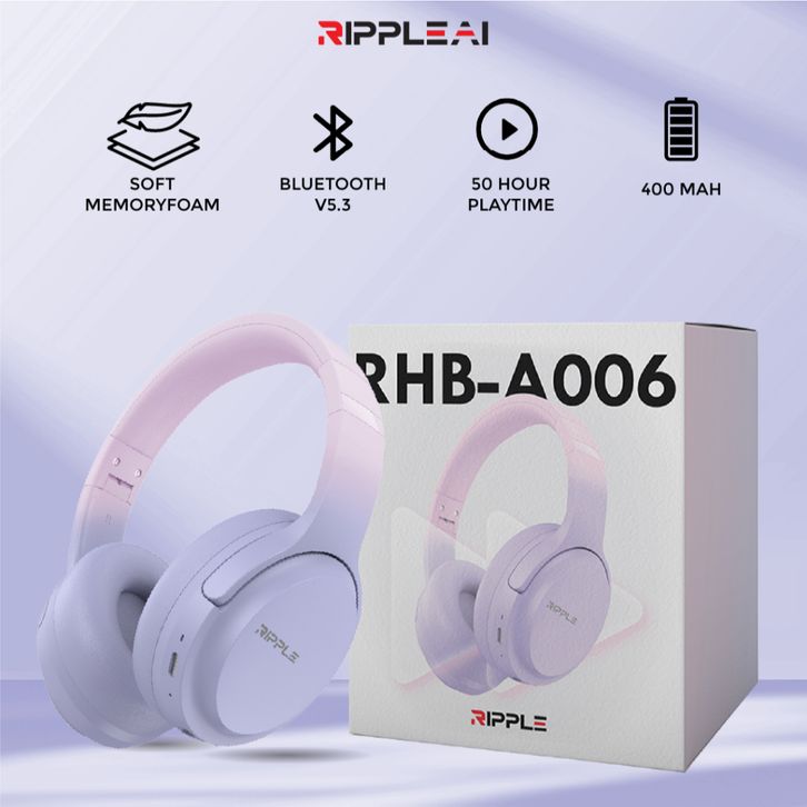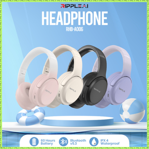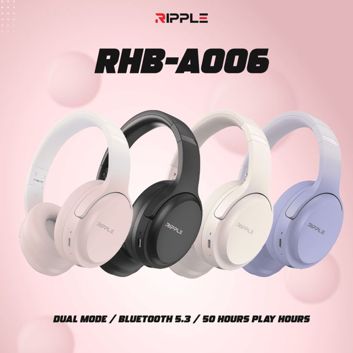 HEADSET BLUETOOTH ORIGINAL EARPHONE HEADPHONE GAMING FULL BASS HANDSFREE KABEL | RIPPLE RHB A006 5.3 ORI TERLARIS