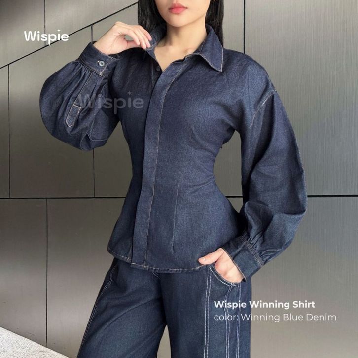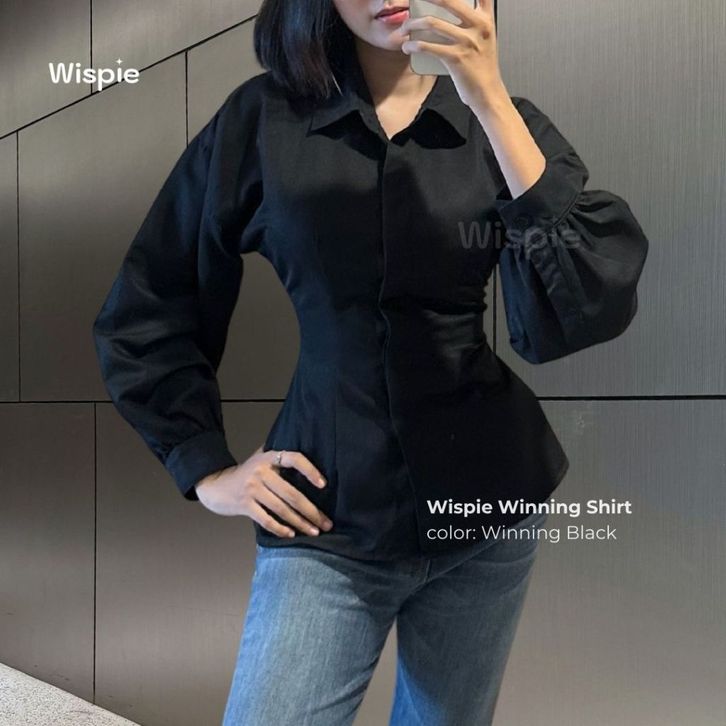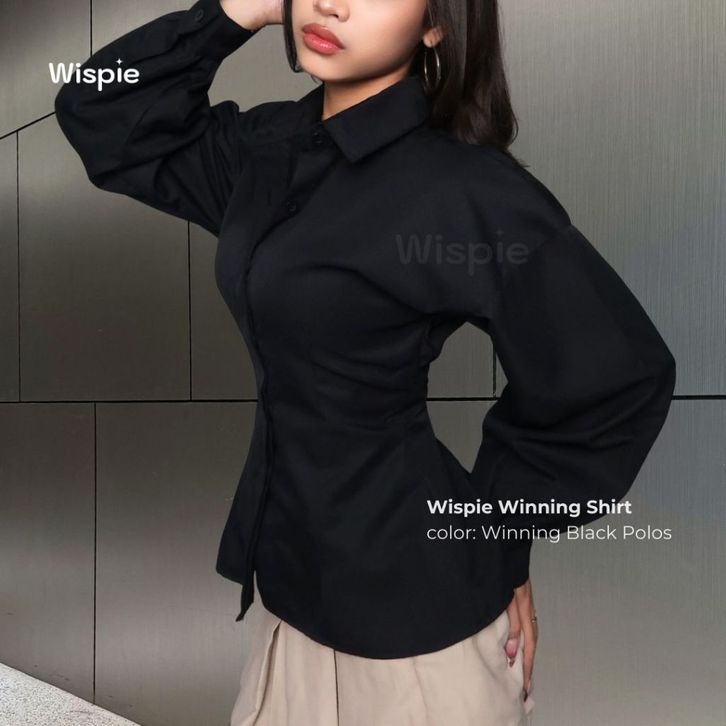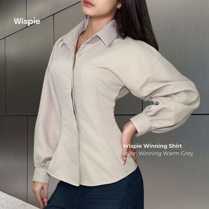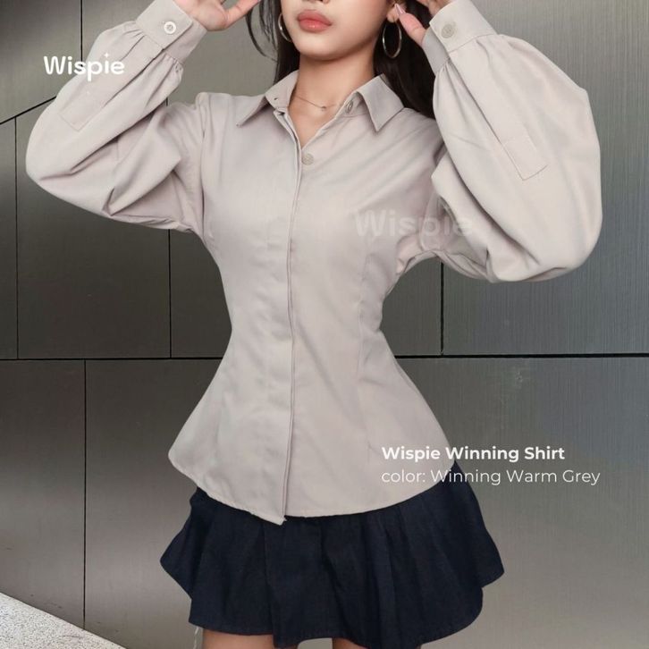KEMEJA WANITA TERBARU DAN KEKINIAN WISPIE WINNING SHIRT KEMEJA FITTED BLOUSE LENGAN PANJANG WANITA WARM GREY HITAM
