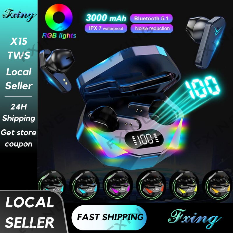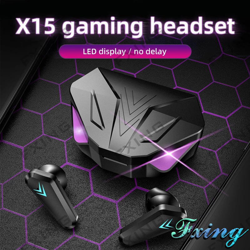 Headset X15 TWS Bluetooth V5.2 Headset Gaming Layar Digital Nirkabel Tanpa Latensi