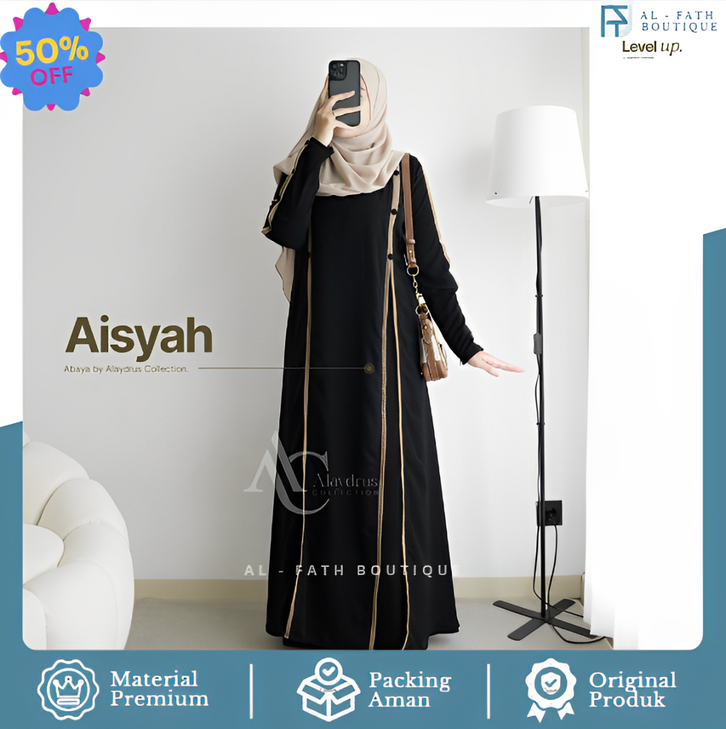 ABAYA HITAM TURKEY AISYAH GAMIS SYARI MUSLIMAH JETBLACK HITAM KOMBINASI CHIFFON