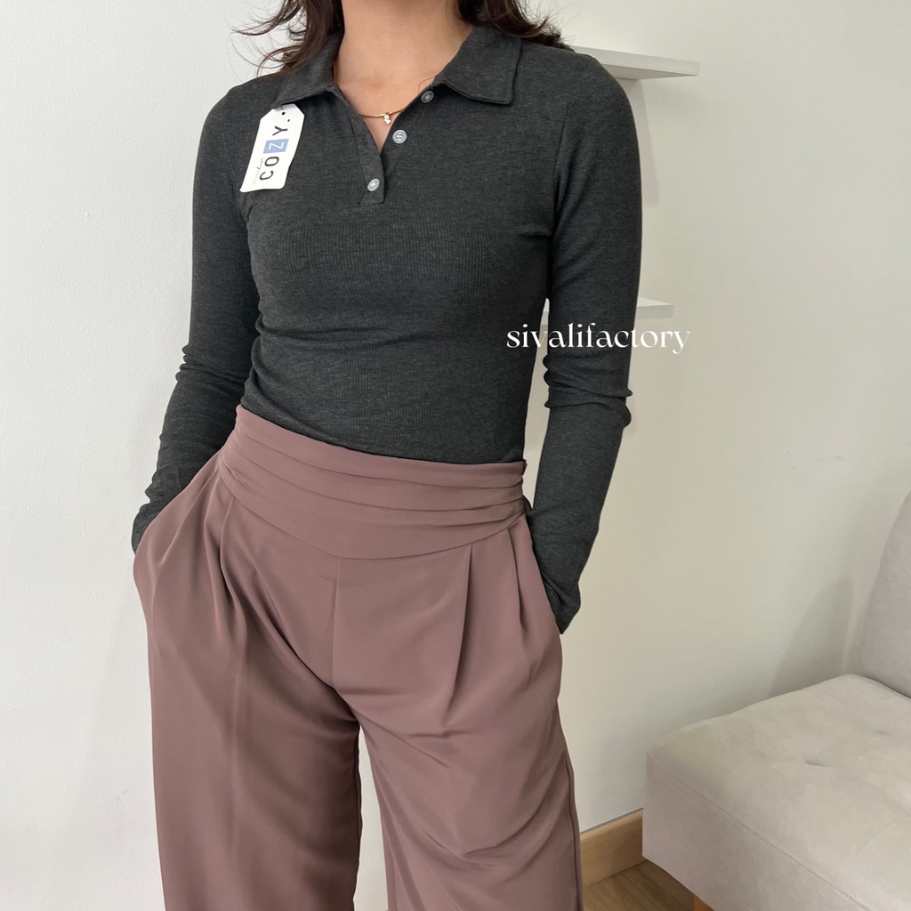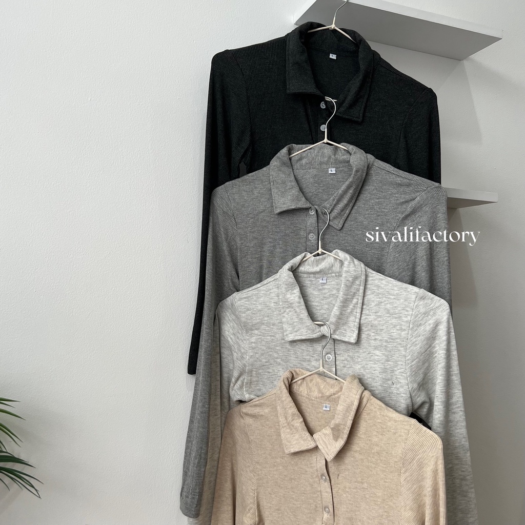 SIVALI INDY Polo Knit Top Longsleeve Shirt Lengan Panjang Atasan Rajut Fit Body
