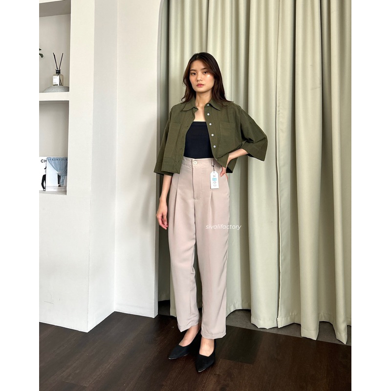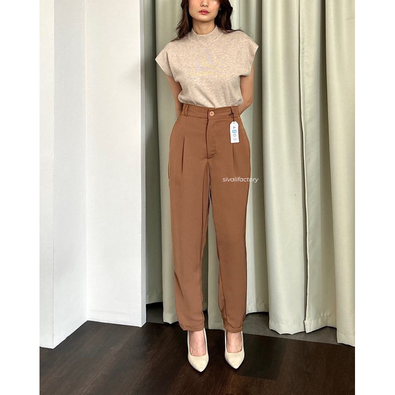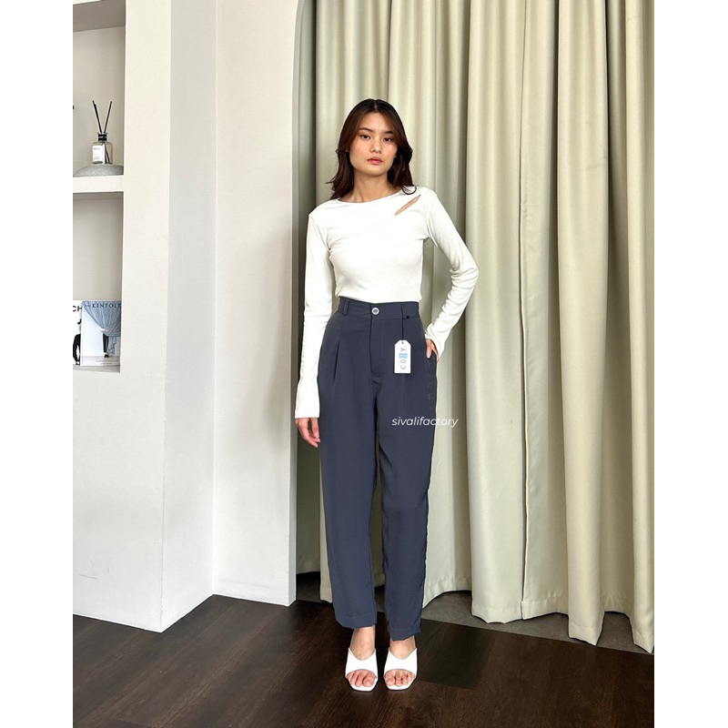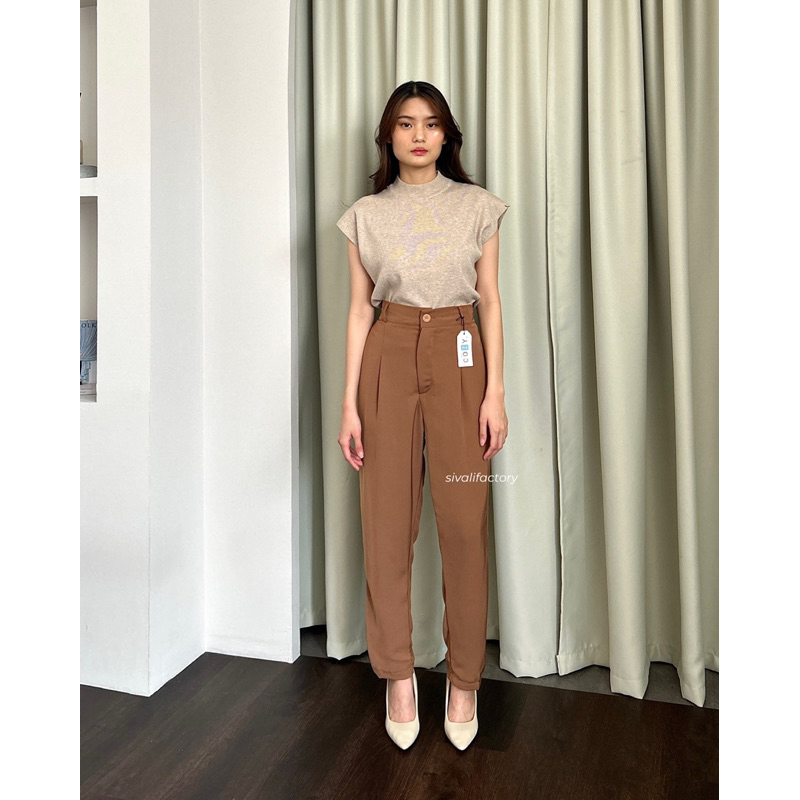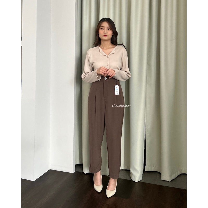 SIVALI Kalea Pants - Celana Highwaist Anti Kusut - Celana Kantor Kulot Wanita - Pencil Pants