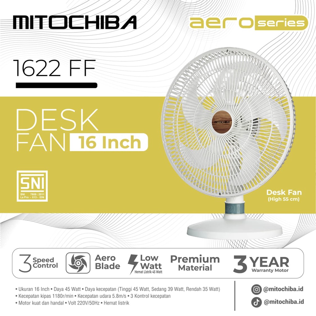 MITO MITOCHIBA AERO SERIES 1622 FF KIPAS ANGIN MEJA DESK FAN 16 INCH Keperluan Rumah