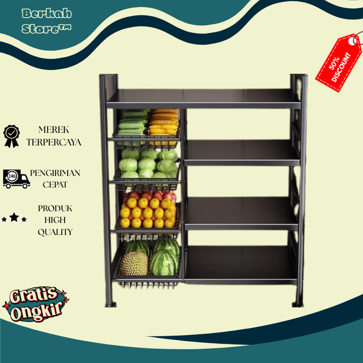 Rak Dapur Minimalis Rak baja dengan roda Rak buah termurah terlaris gratis ongkir