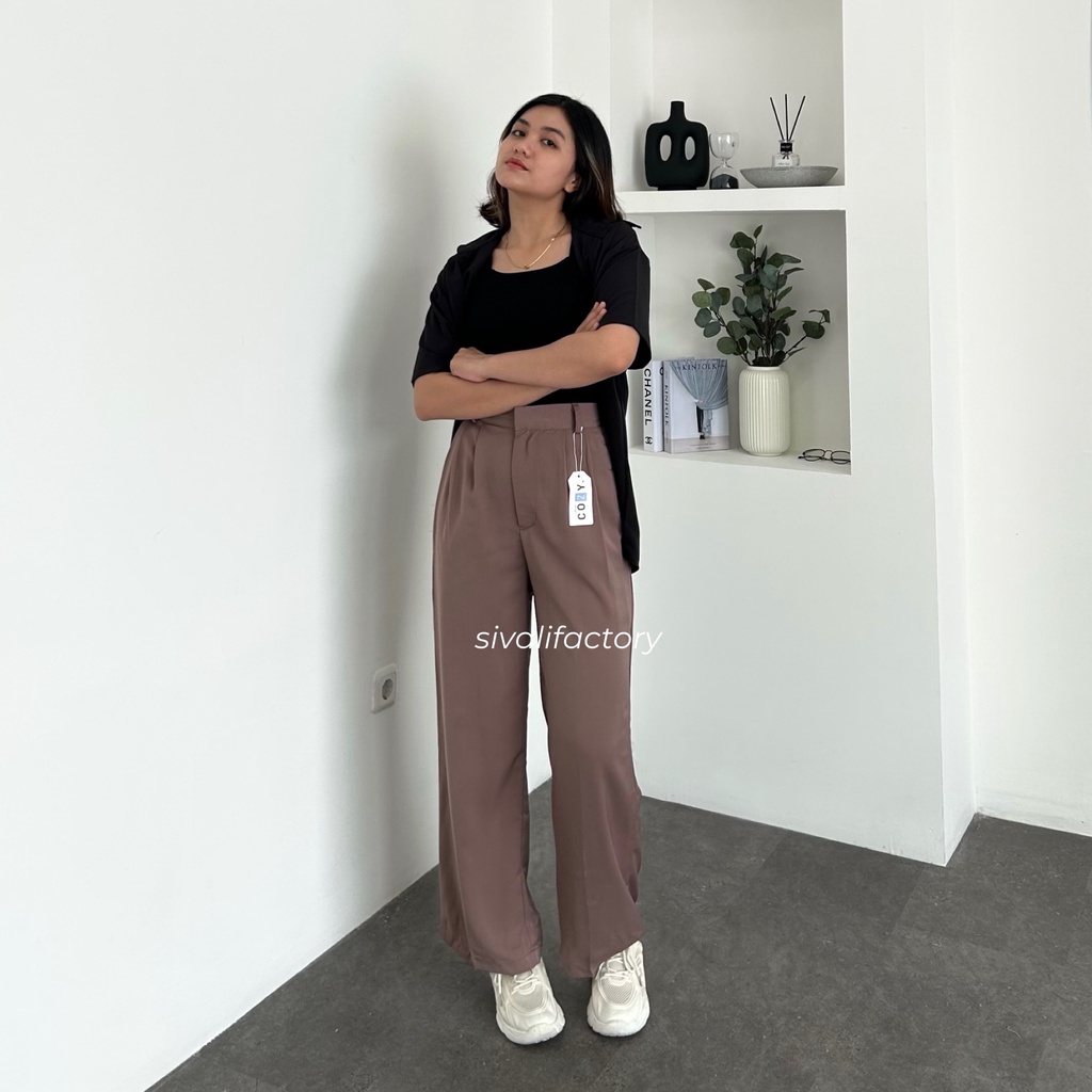 SIVALI Loose Pants Trousers Wanita - Celana Anti Kusut - Celana Kulot Wanita - Celana Kantor Formal/Casual 118