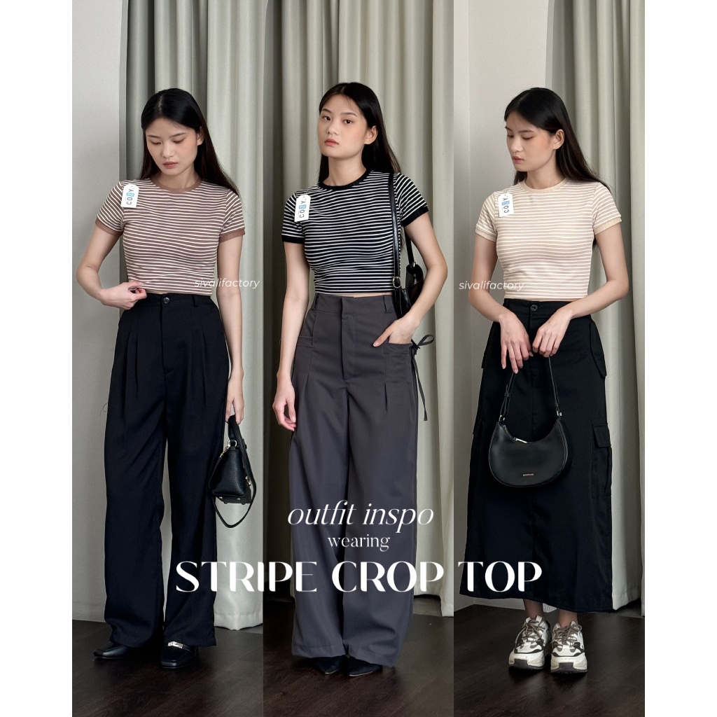 SIVALI Stripe Crop Top - Kaos Basic Wanita Garis Bahan Premium Knit Atasan Wanita