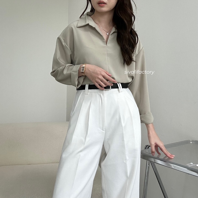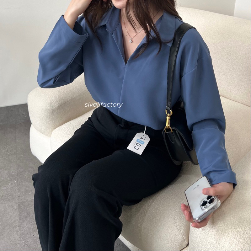 SIVALI Minji Shirt | Basic Loose Office Shirt - Kemeja Wanita Kantor Atasan Baju Anti Kusut