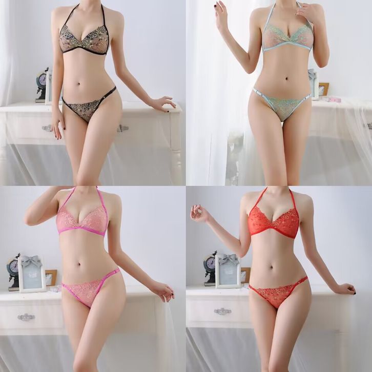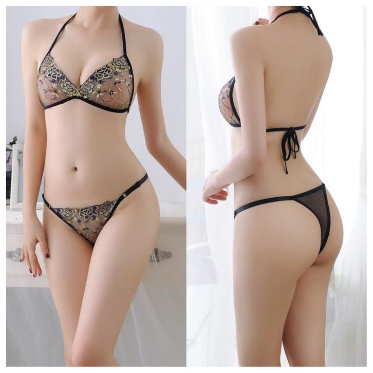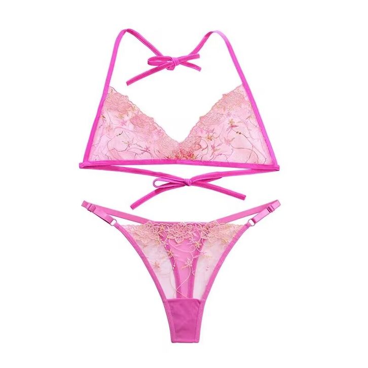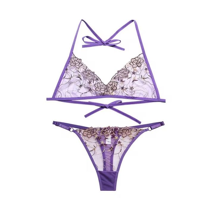 Dezenna Set Bra Wanita Sexy Bikini Floral Transparan Bra G String Big Size 5A137