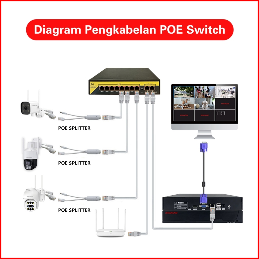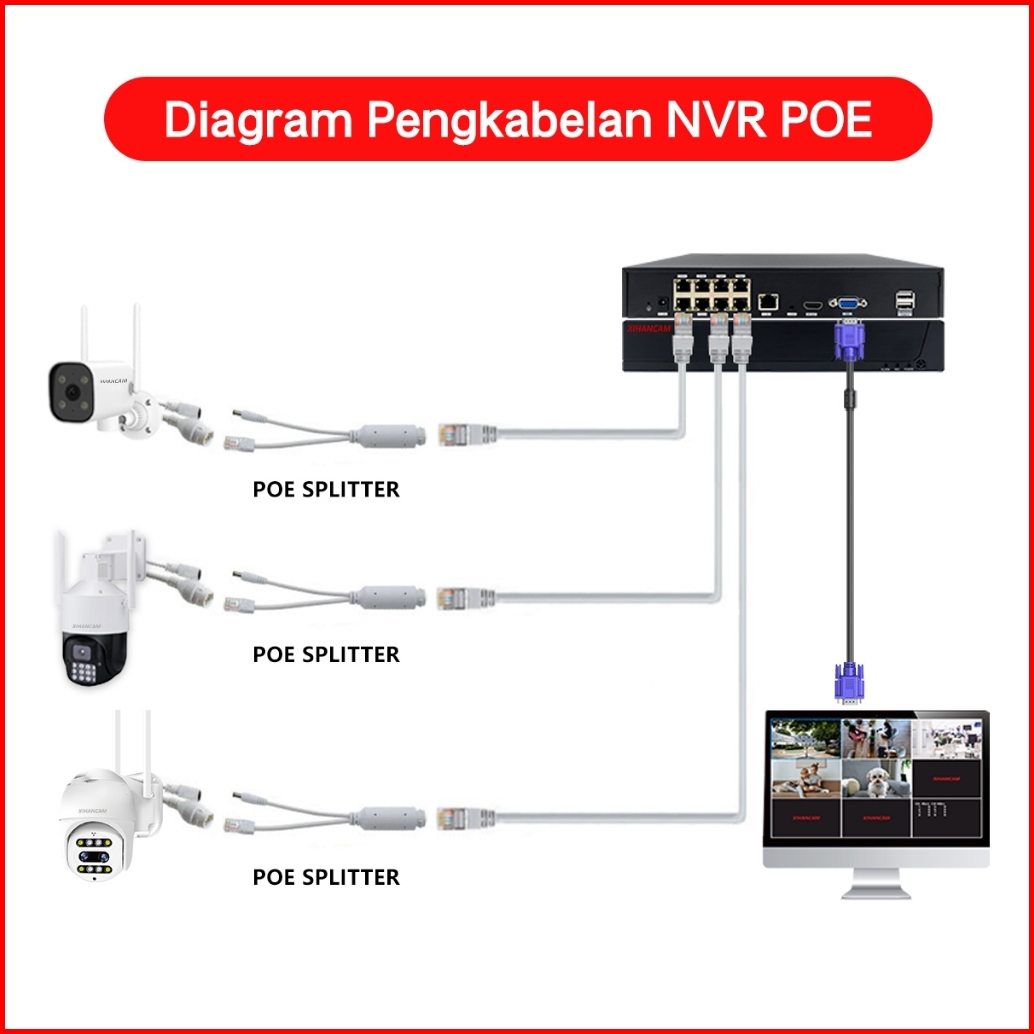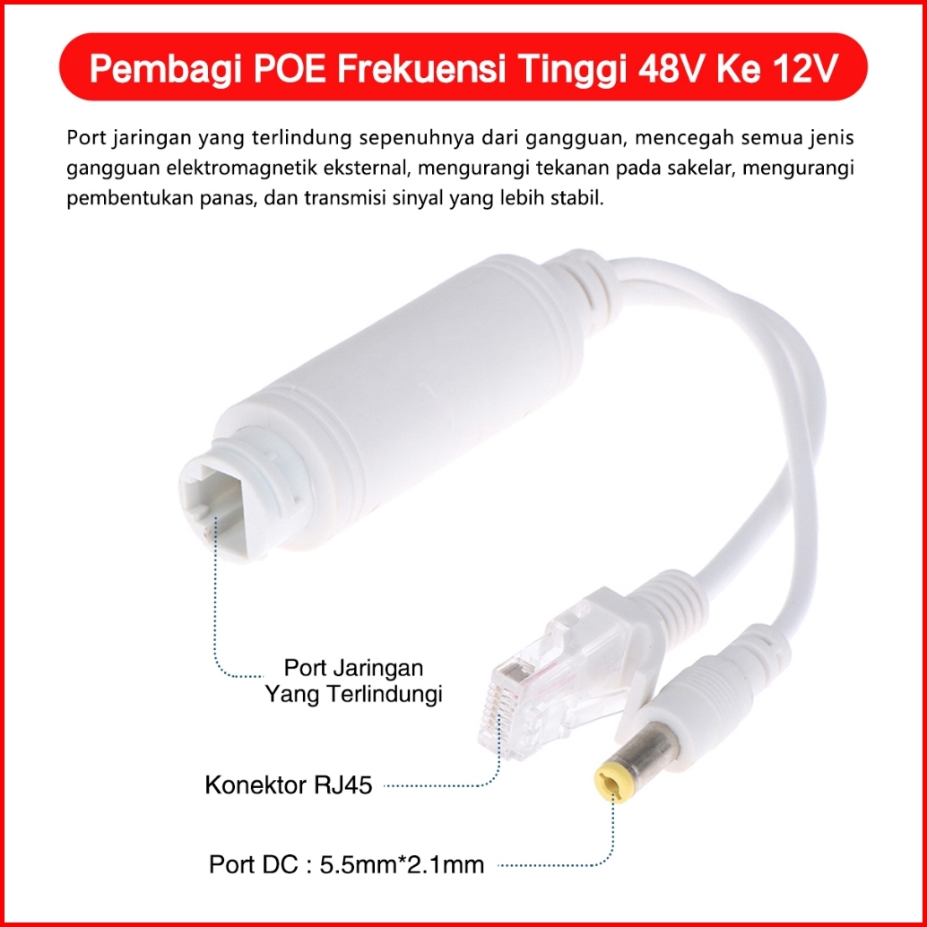 Xihancam Kabel Poe Splitter Dan Poe Injector Konektor Kabel Poe Set Waterproof 48v To 12v